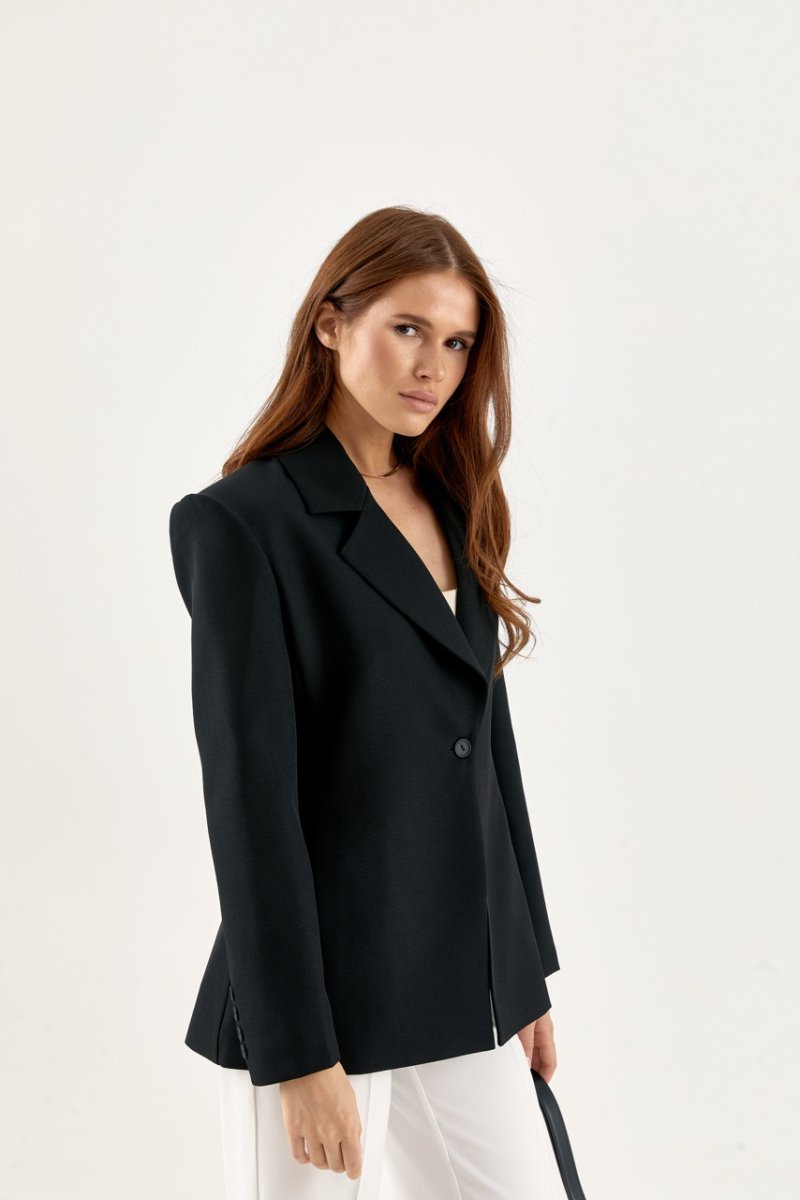 Жіночий піджак класичного крою з однобортною застібкою на ґудзик — ідеальний варіант для офісу, ділових зустрічей та стильних виходів. Виконаний із якісної костюмної тканини, має чіткі лінії плечей, глибокий V-подібний виріз з відкладним коміром та акуратний приталений силует. Лаконічний дизайн дозволяє легко поєднувати піджак із класичними брюками, спідницями-олівець або джинсами, створюючи як ділові, так і повсякденні образи.