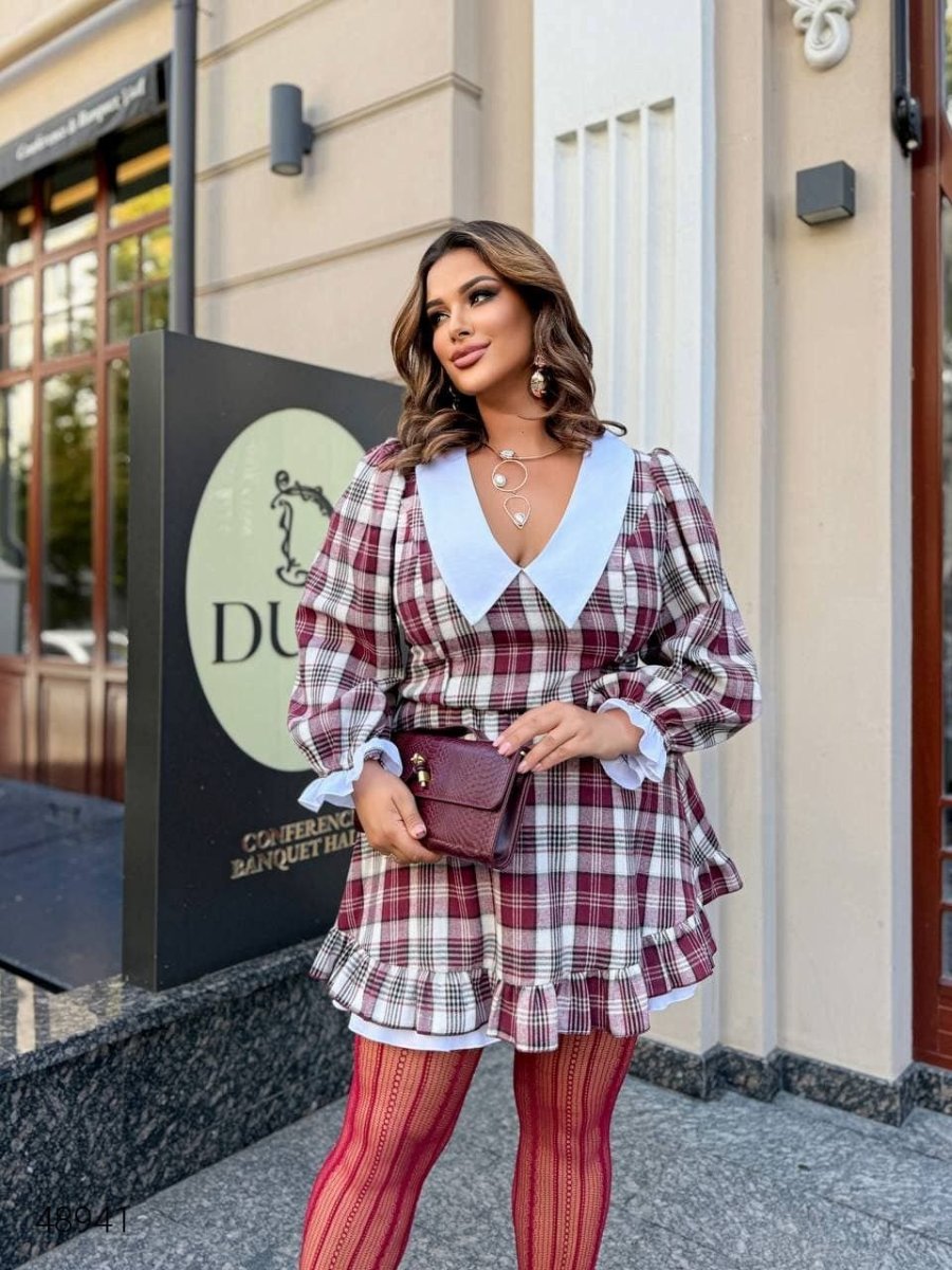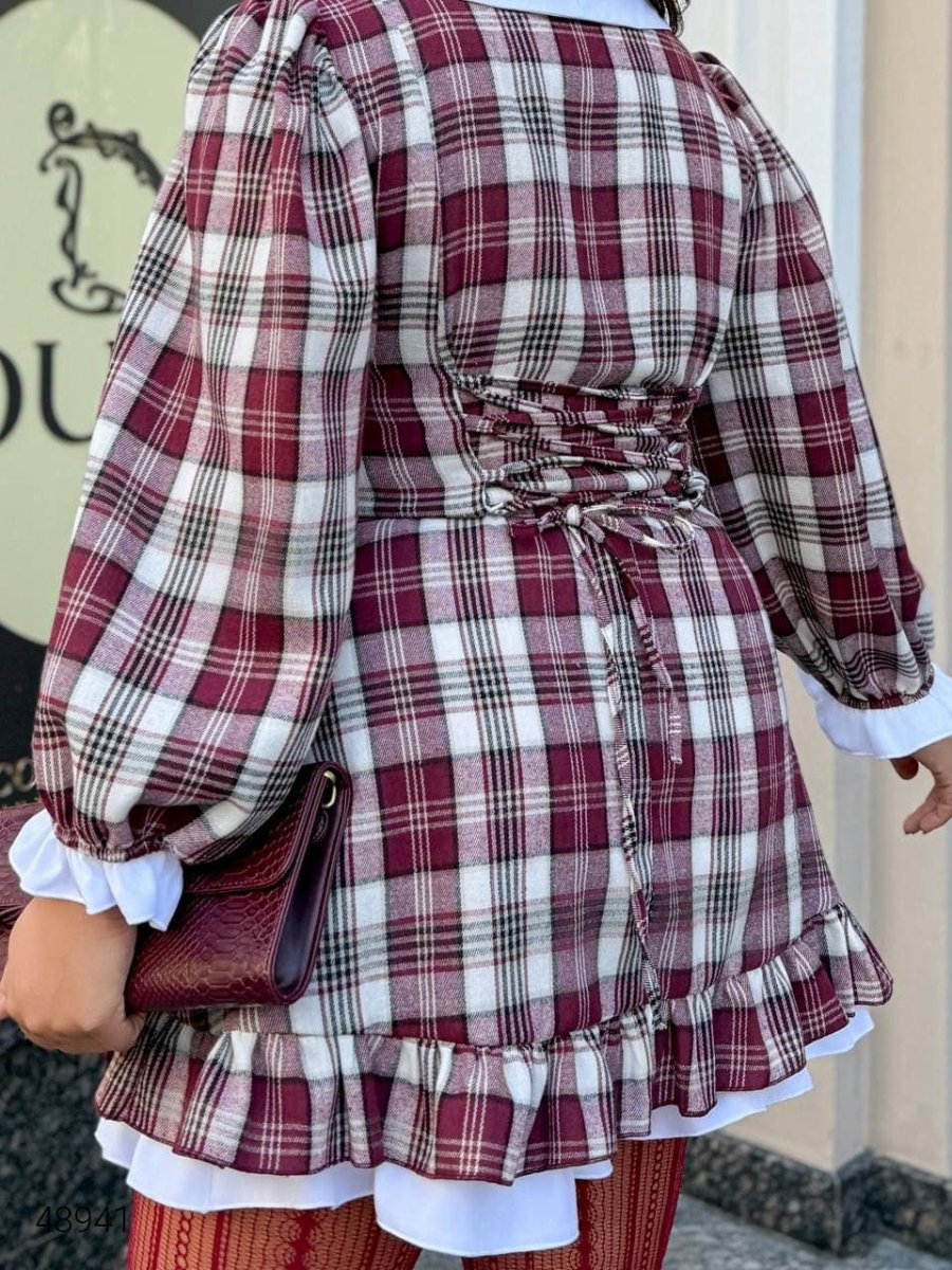 Картата сукня з шортами. Позаду на шнурівці, можна регулювати об’єм грудей.
