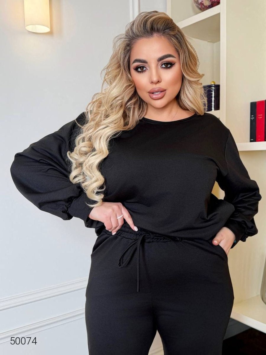 Жіночий костюм-трійка (кофта, брюки та жилет) — практичний і комфортний варіант для повсякденних образів у прохолодну пору року. Брюки з резинкою на талії забезпечують зручну посадку, а наявність кишень у кофті та брюках додає функціональності.