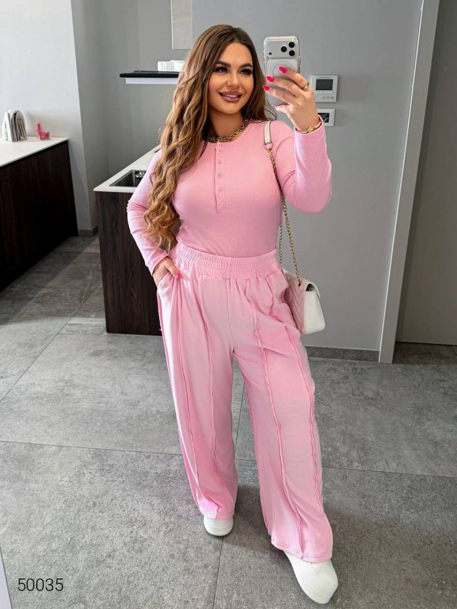 Костюм жіночий. Штани та лонгслів. Лонгслів зверху застібається на кнопки. Штани на резинці.