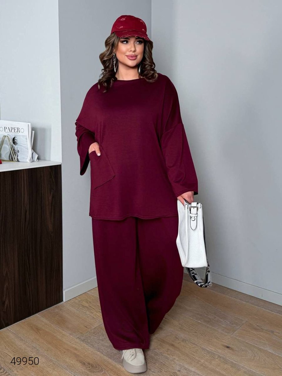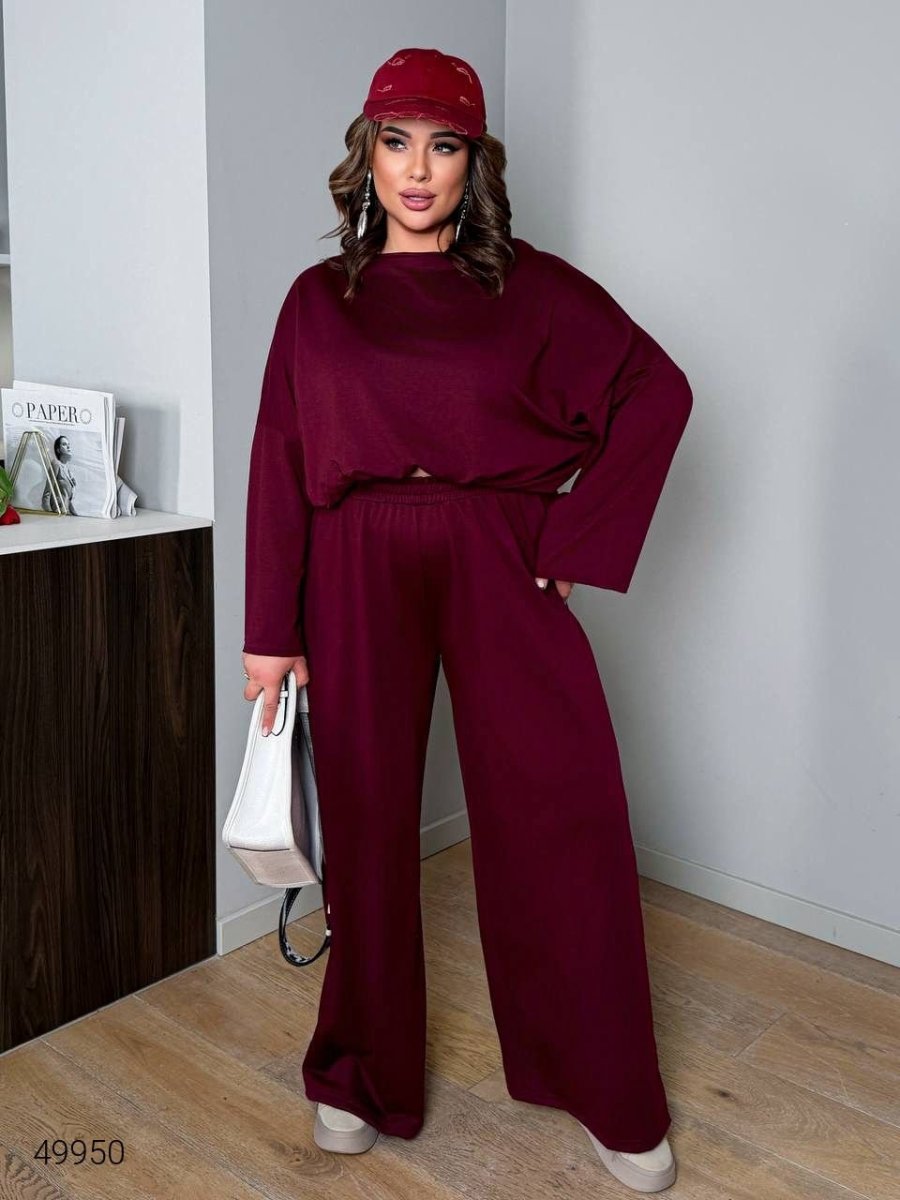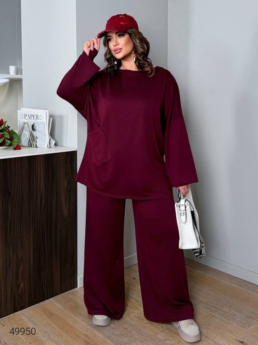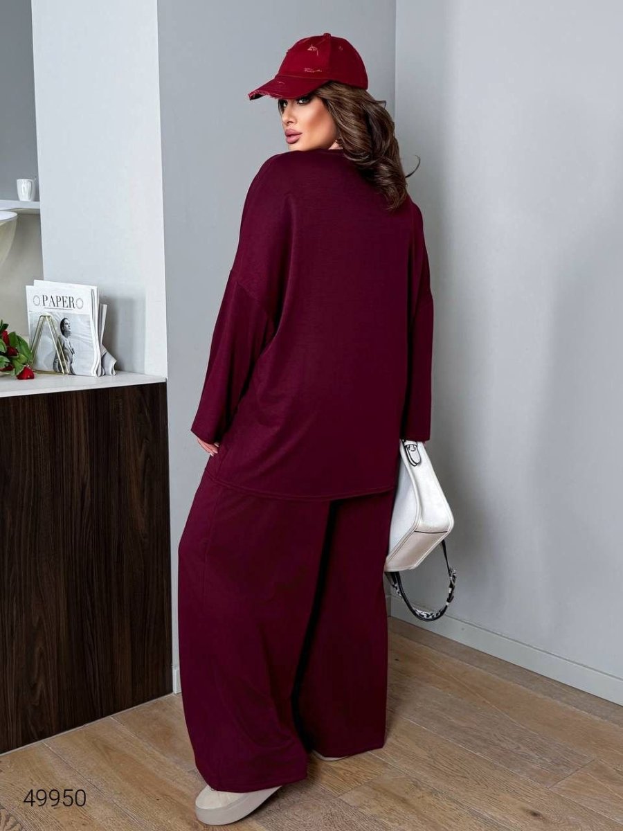 Костюм жіночий брючний оверсайз 49950 бордовий