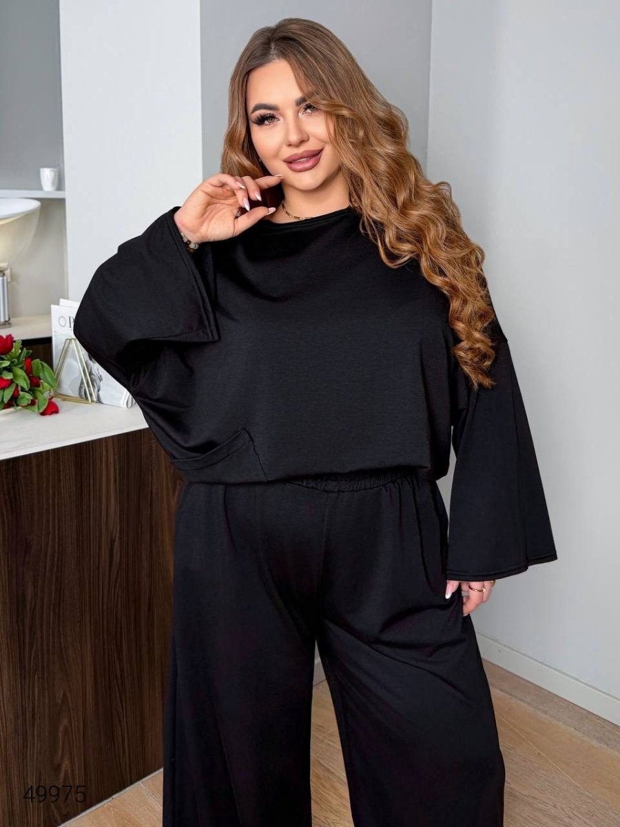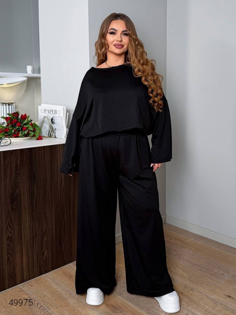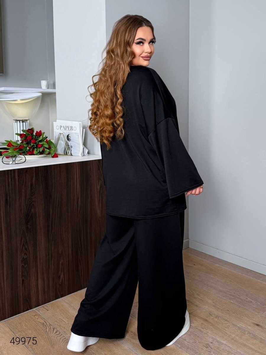 Костюм жіночий брючний оверсайз. Подовжена кофта та брюки-палаццо. Талія на резинці.
