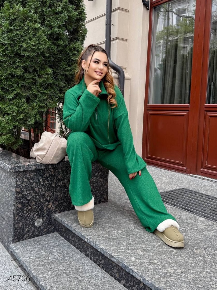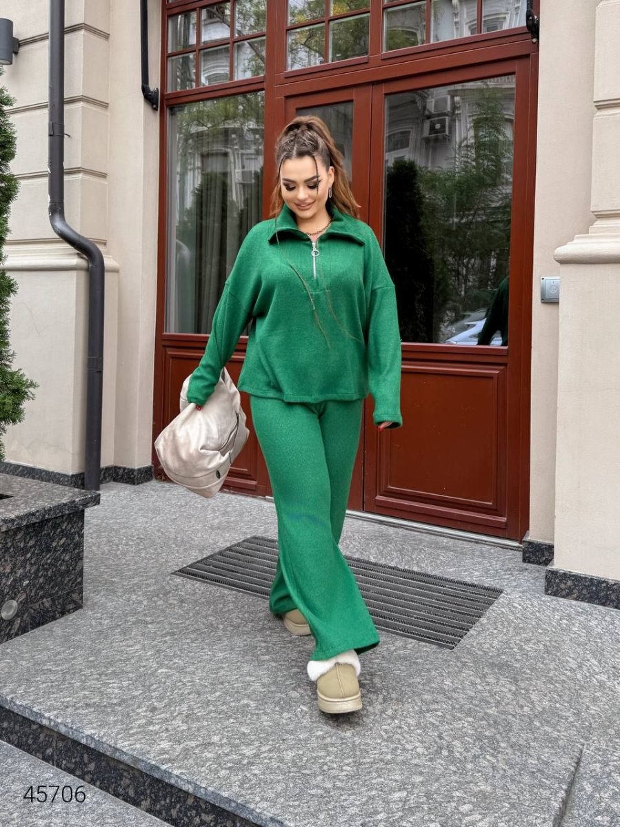 Костюм жіночій зі светром-поло. Вільна кофта застібається на блискавку та штани палаццо.