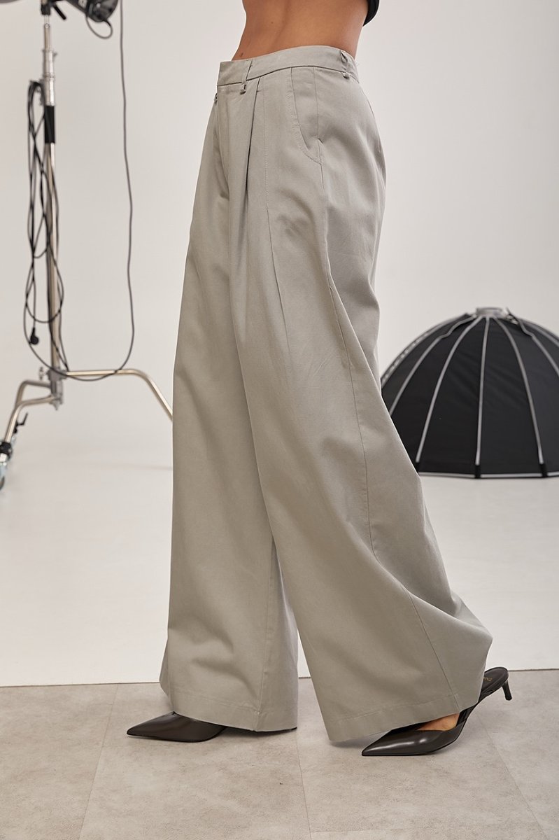 Легкі котонові штани палаццо зі складками — елегантна та котонова тканина приємна до тіла, добре пропускає повітря та забезпечує комфорт упродовж дня. Широкі штанини з прямим низом створюють витончений, подовжений силует.