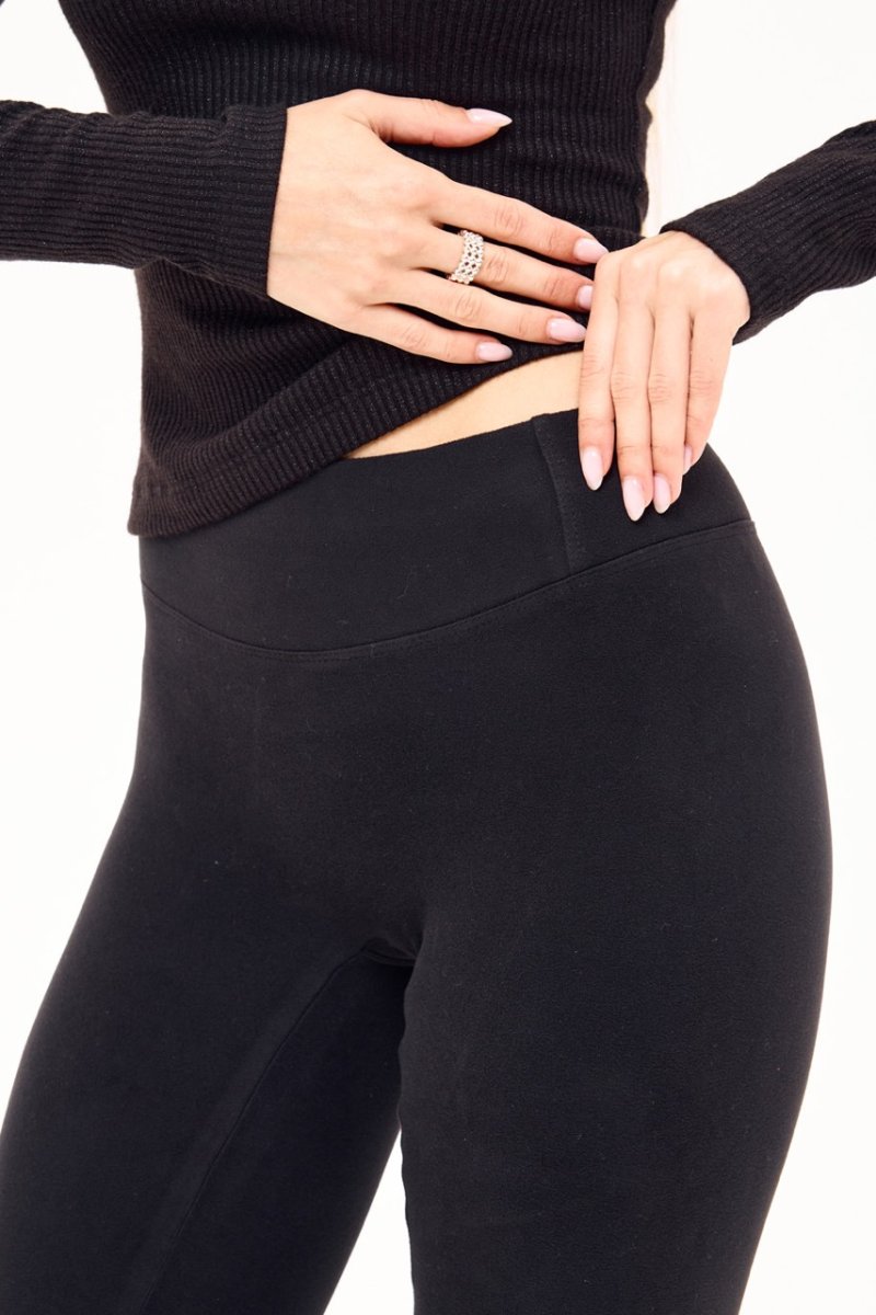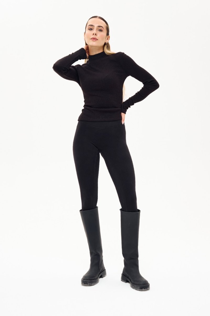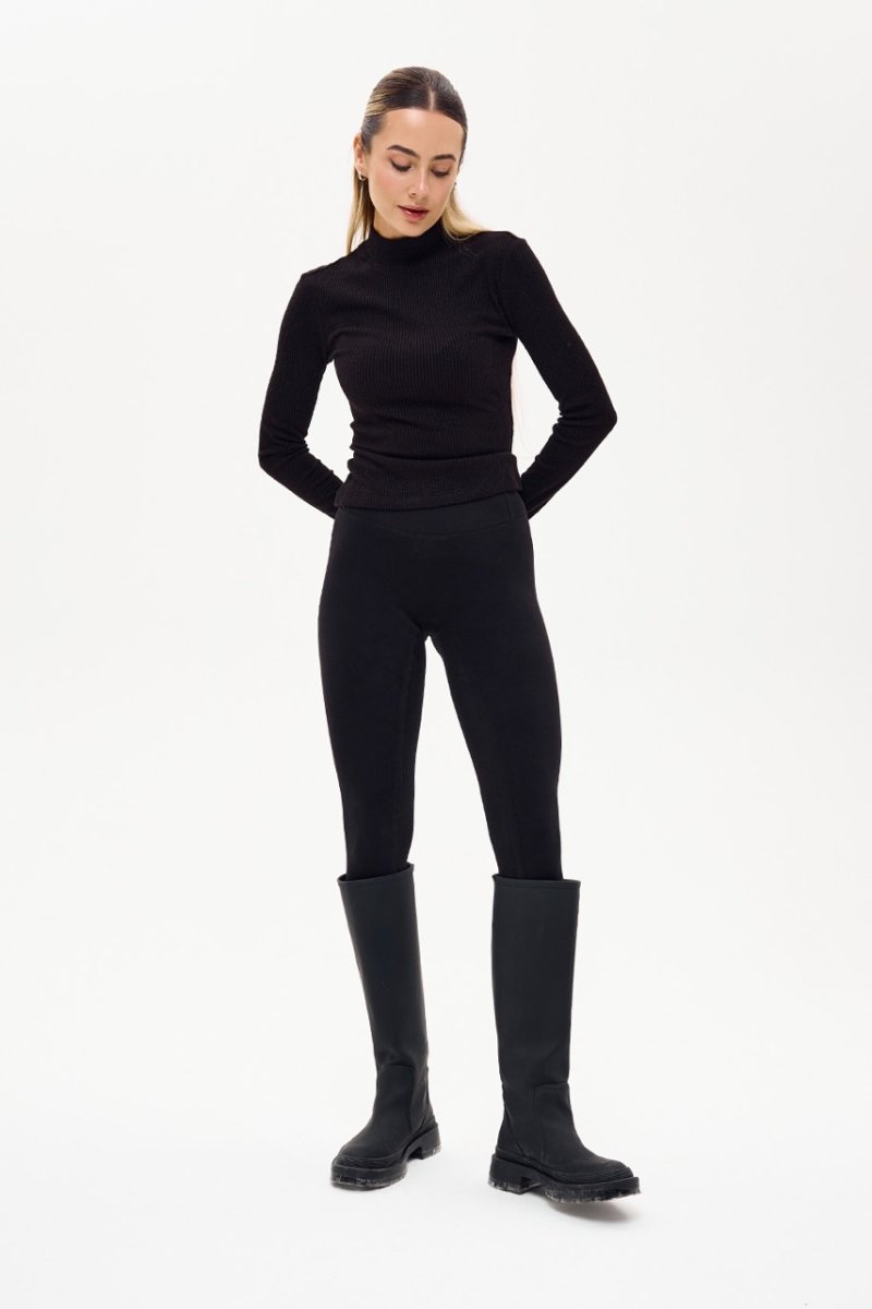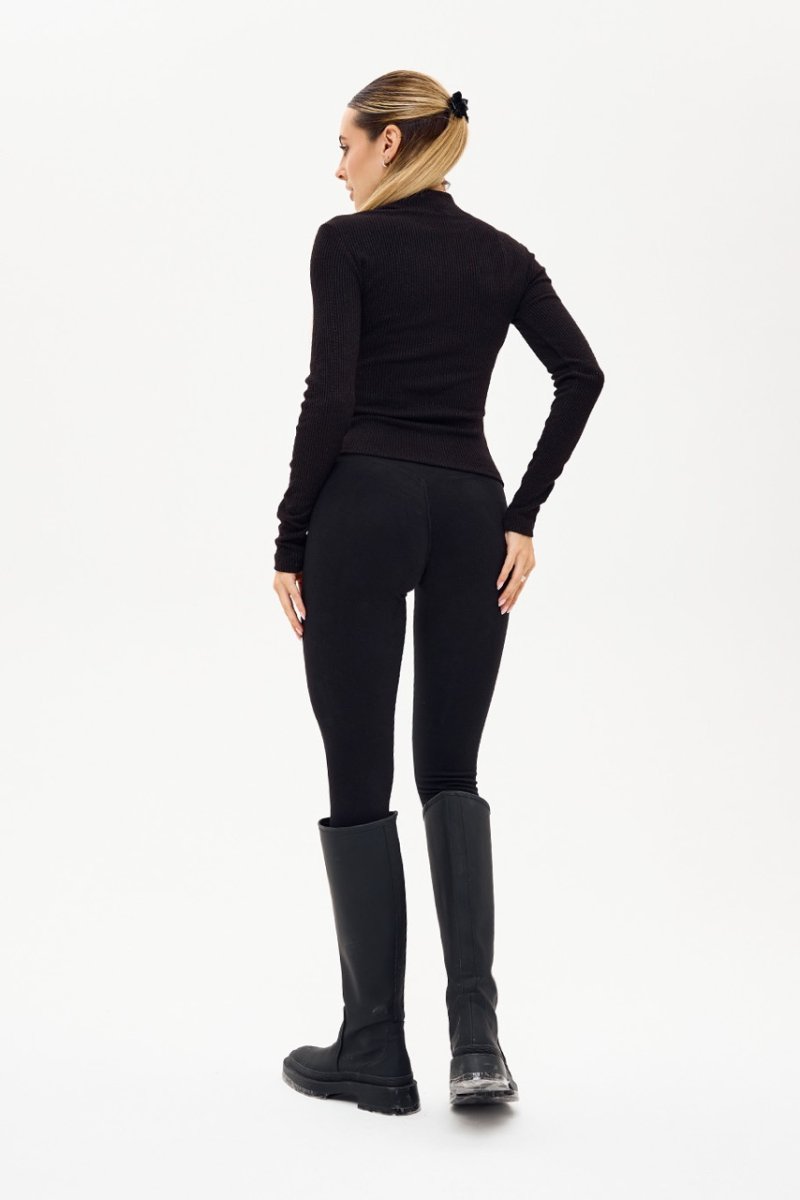 Лосини-гамаші з трикотажу термо, що забезпечують комфорт і тепло в прохолодну пору. Модель має еластичну резинку та кокетку ззаду, які візуально підкреслюють округлість сідниць. Тканина приємна до тіла, м’яко утягує фігуру та зберігає форму під час носіння. Сучасний варіант базових лосин — теплі, стильні й універсальні.