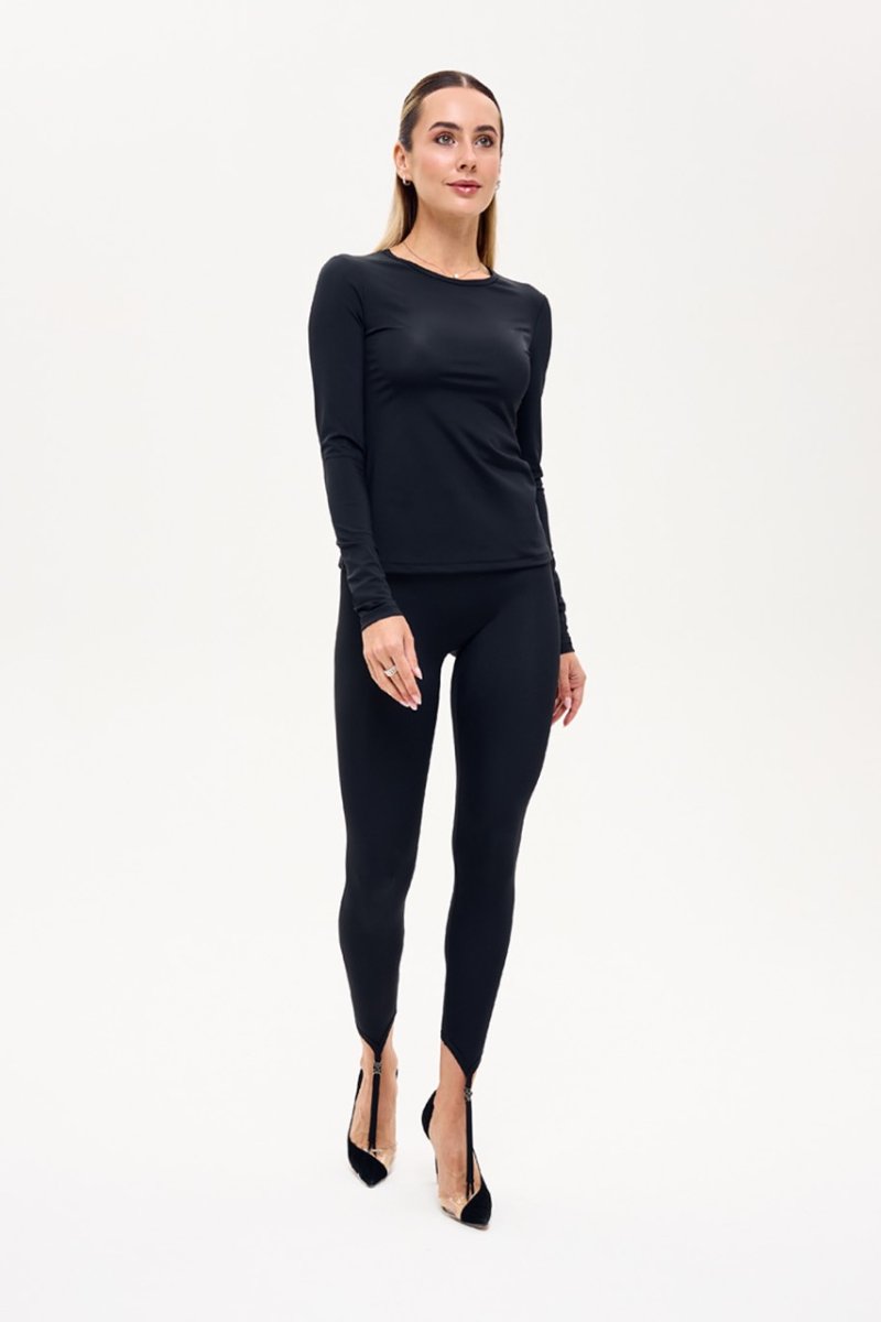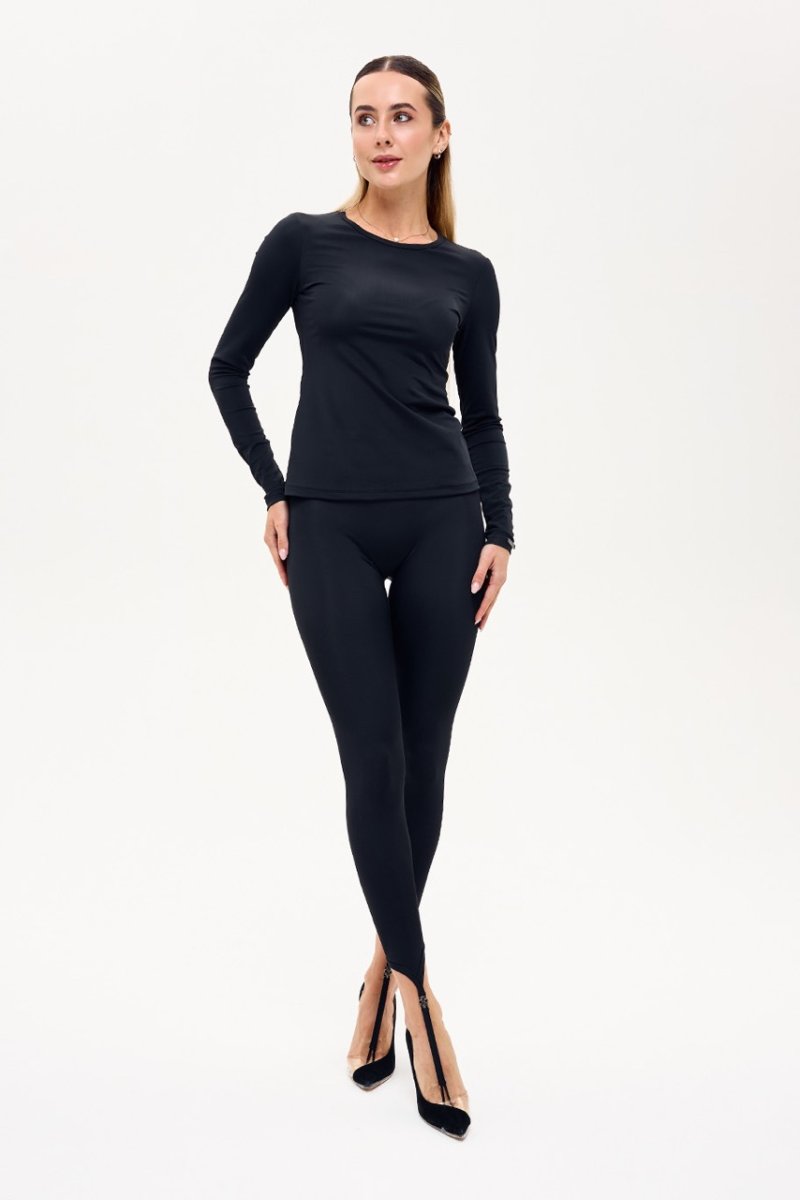 Лосини з біфлексу зі штрипкою через палець і металевою фурнітурою на перепонці. Ззаду виконані з кокеткою та еластичною вставкою, що підкреслює округлість сідниць. Матеріал має ефект утяжки, забезпечуючи комфортну посадку та ідеальний силует. Актуальна модель, яка поєднує в собі стиль і функціональність — підходить як для повсякденних, так і для нарядних образів.