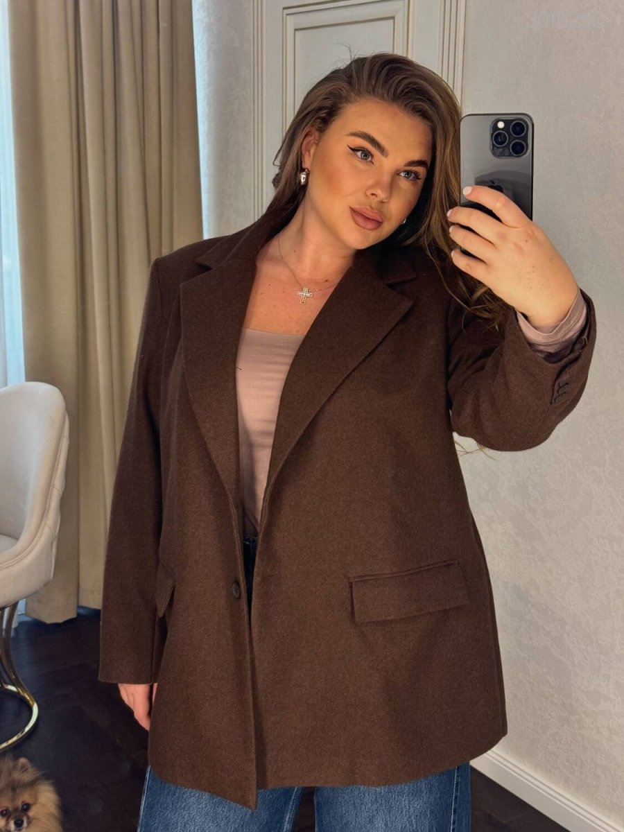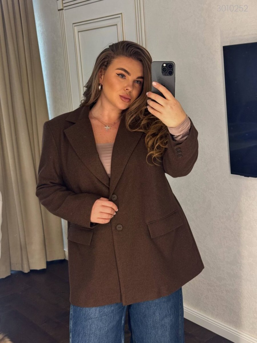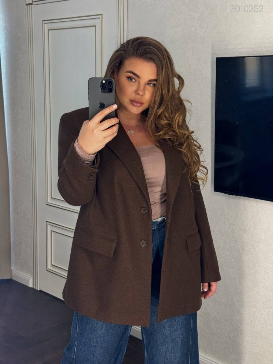 Піджак №1 — прямий силует, оверсайз, застібка на ґудзики, кишені, функціональні блискавки в бокових швах.