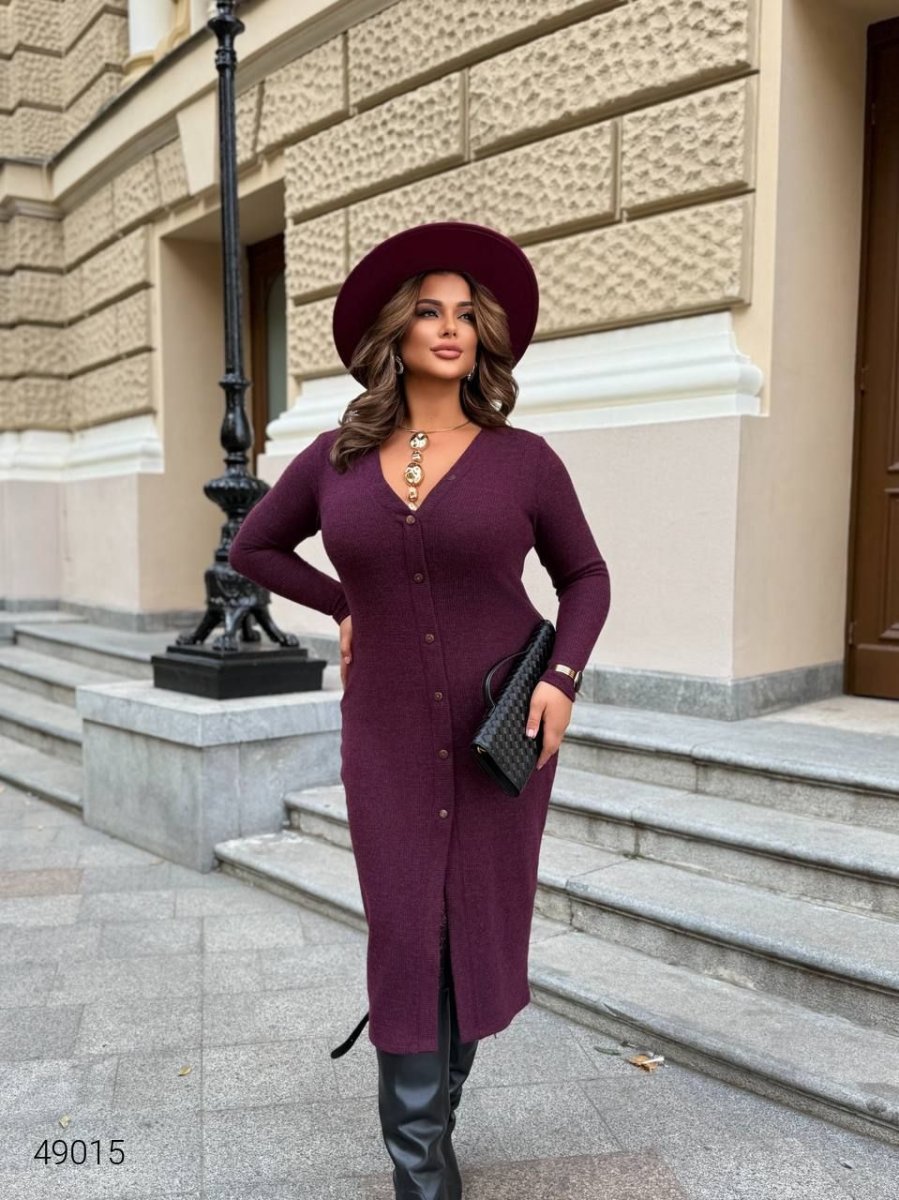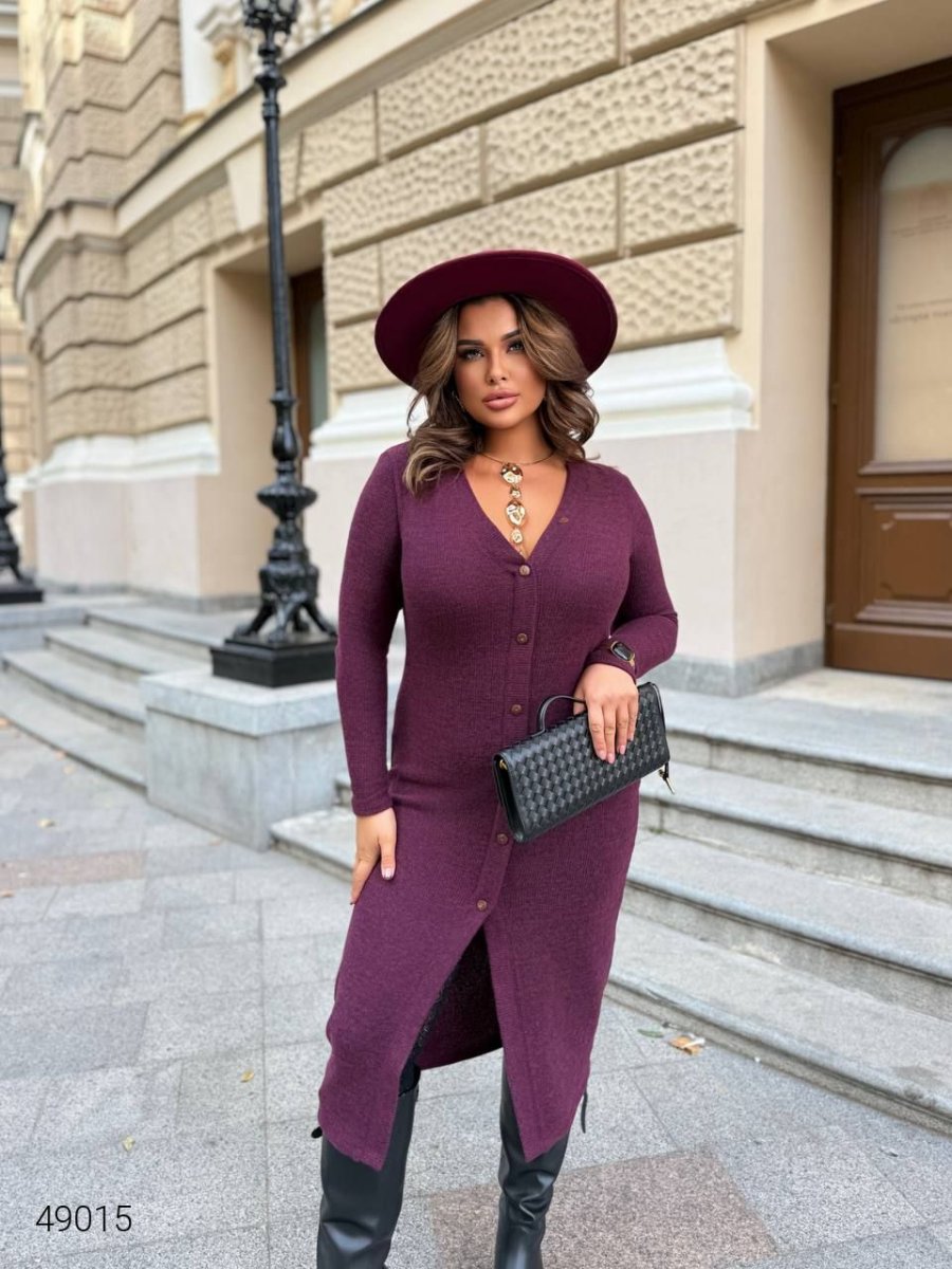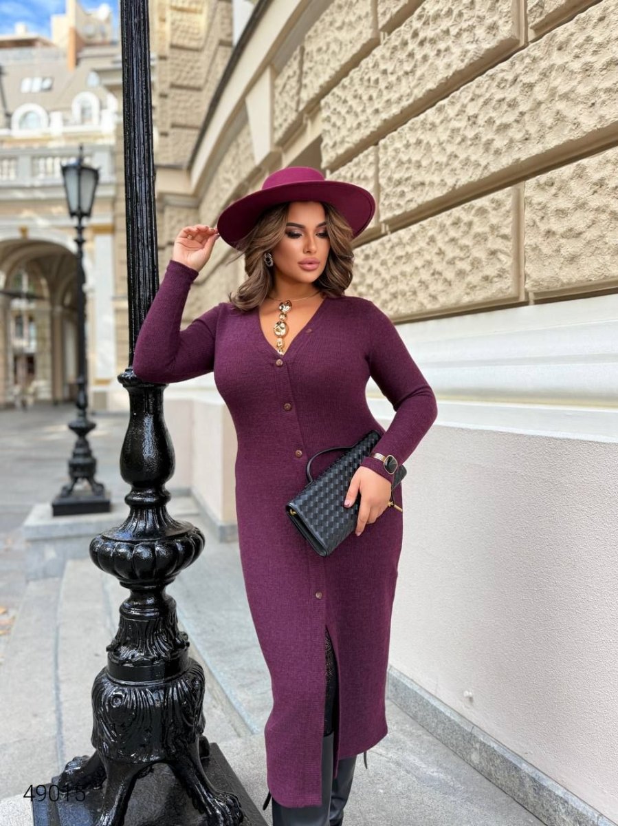 Сукня ангорова довжини міді. На сукні імітація ґудзиків.