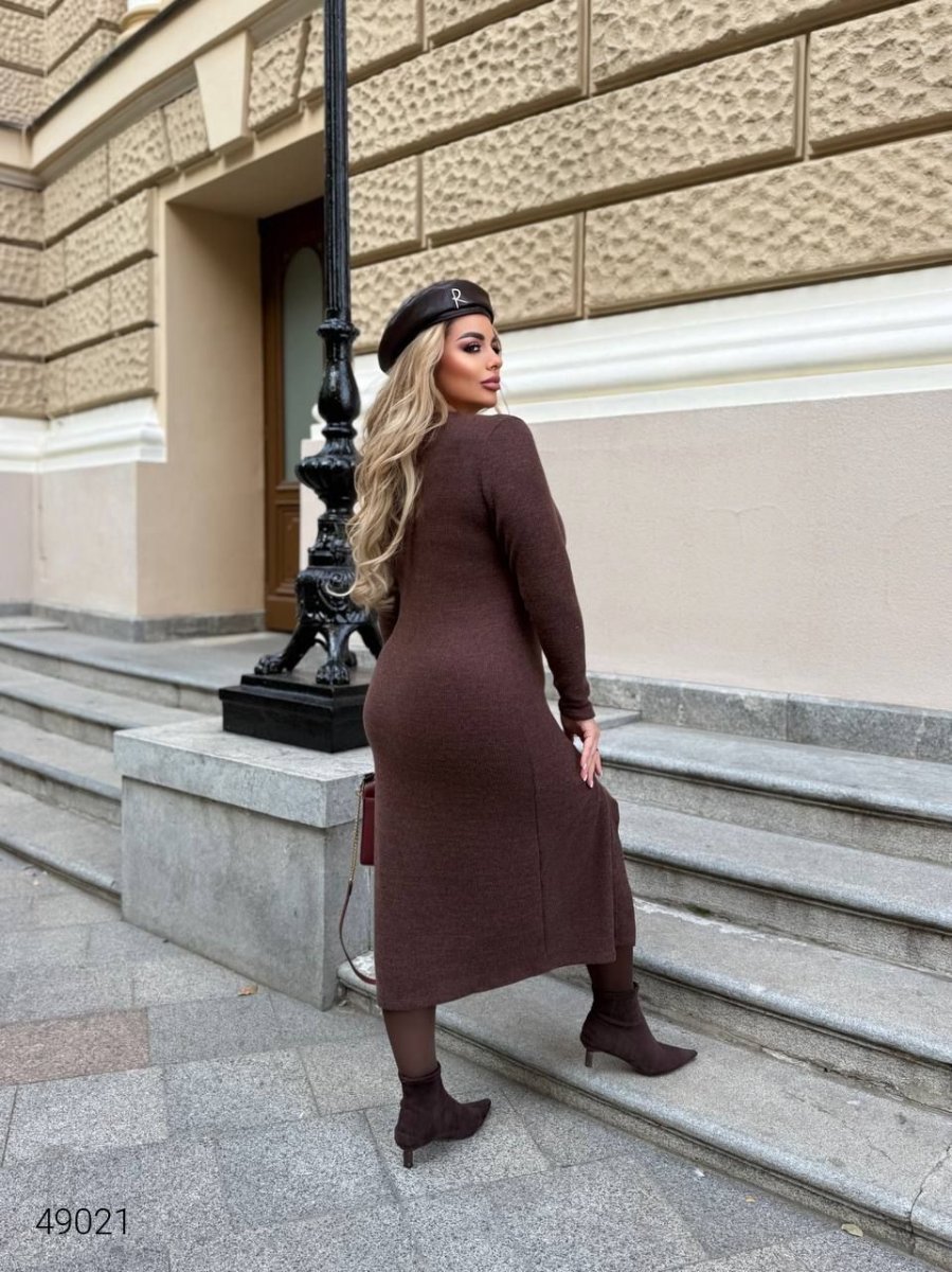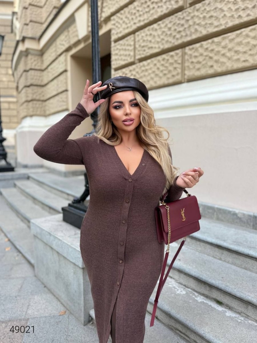 Сукня ангорова довжини міді. На сукні імітація ґудзиків.
