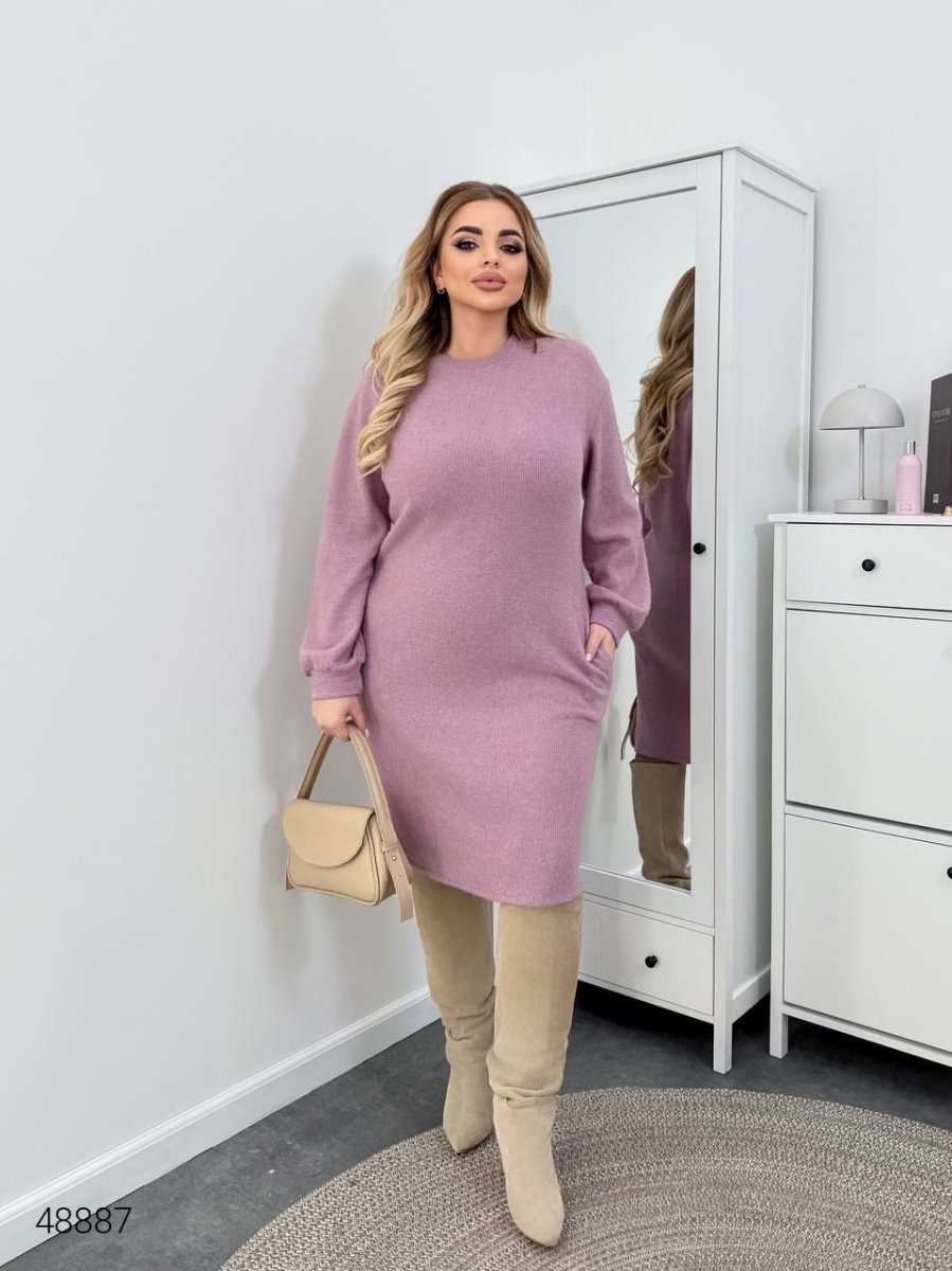 Ангорова сукня з довгим рукавом 48881 рожевий