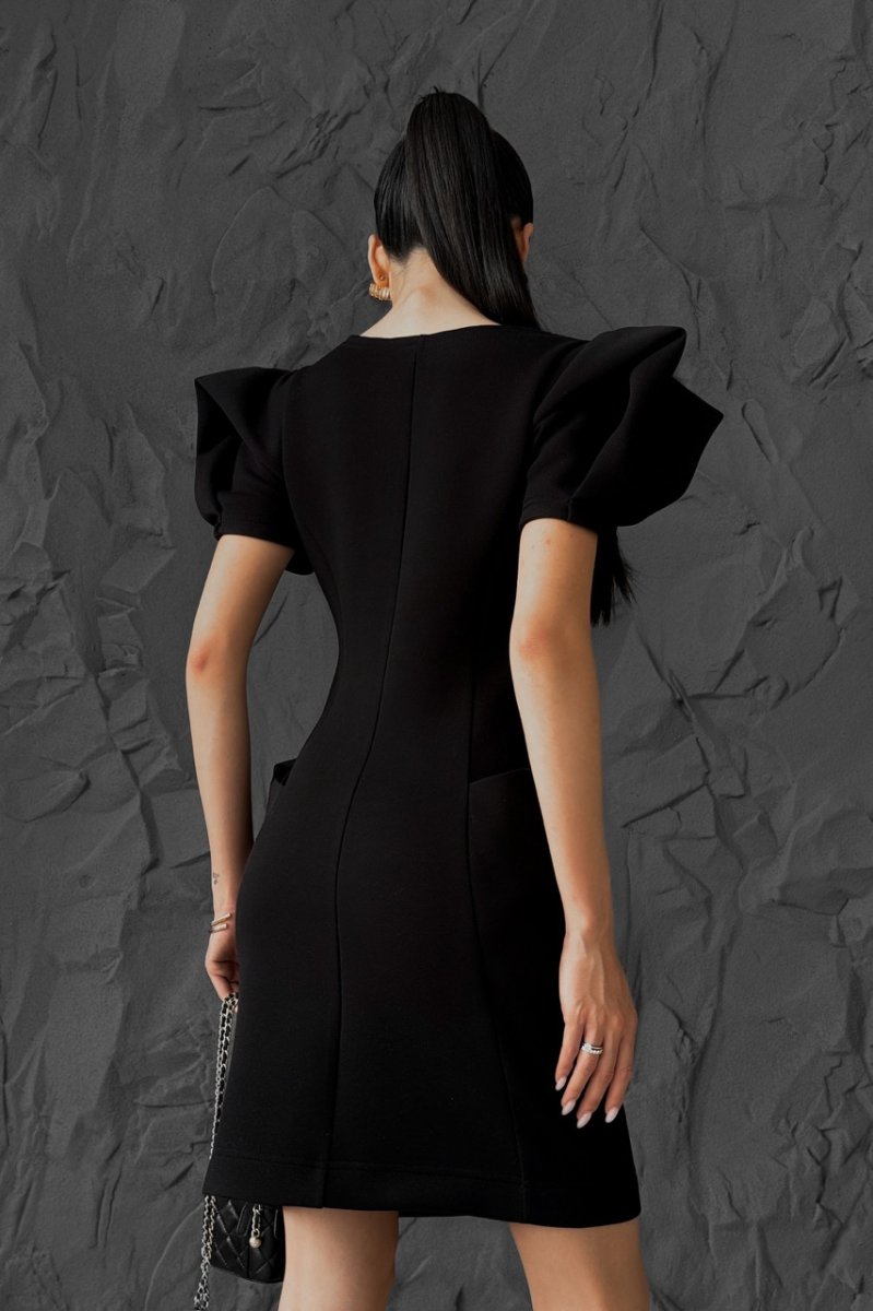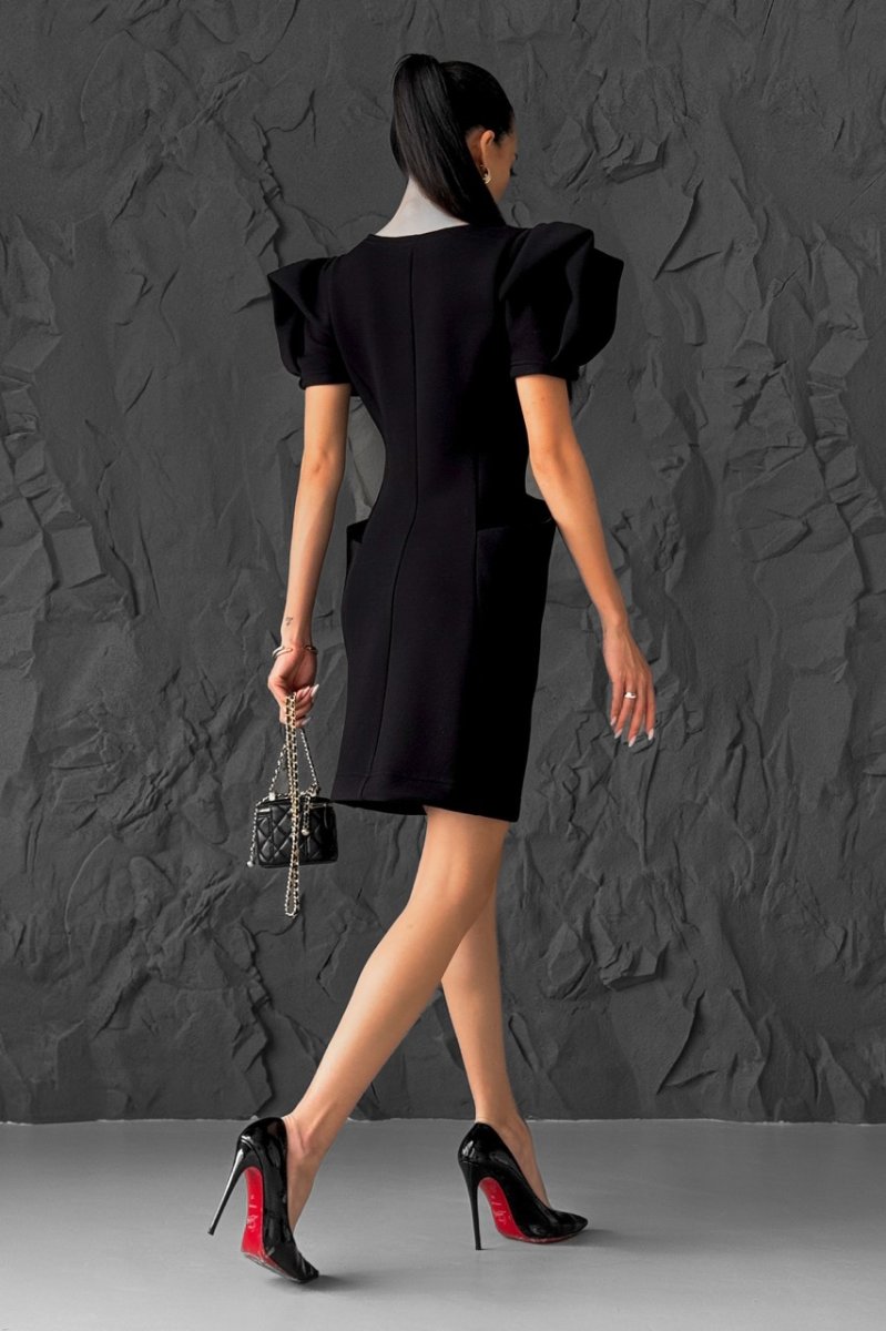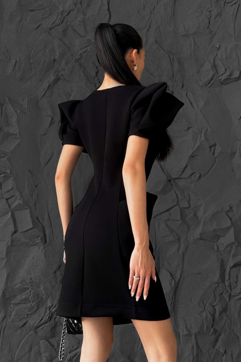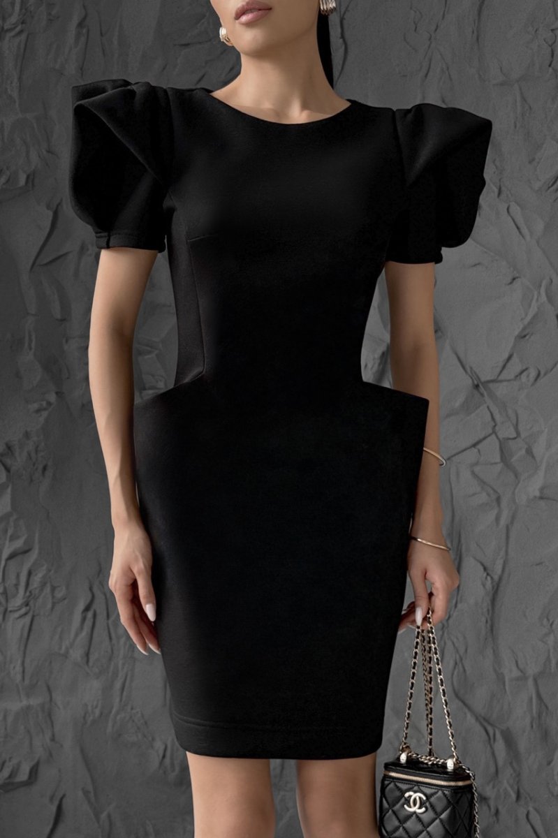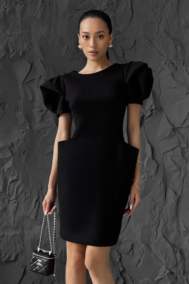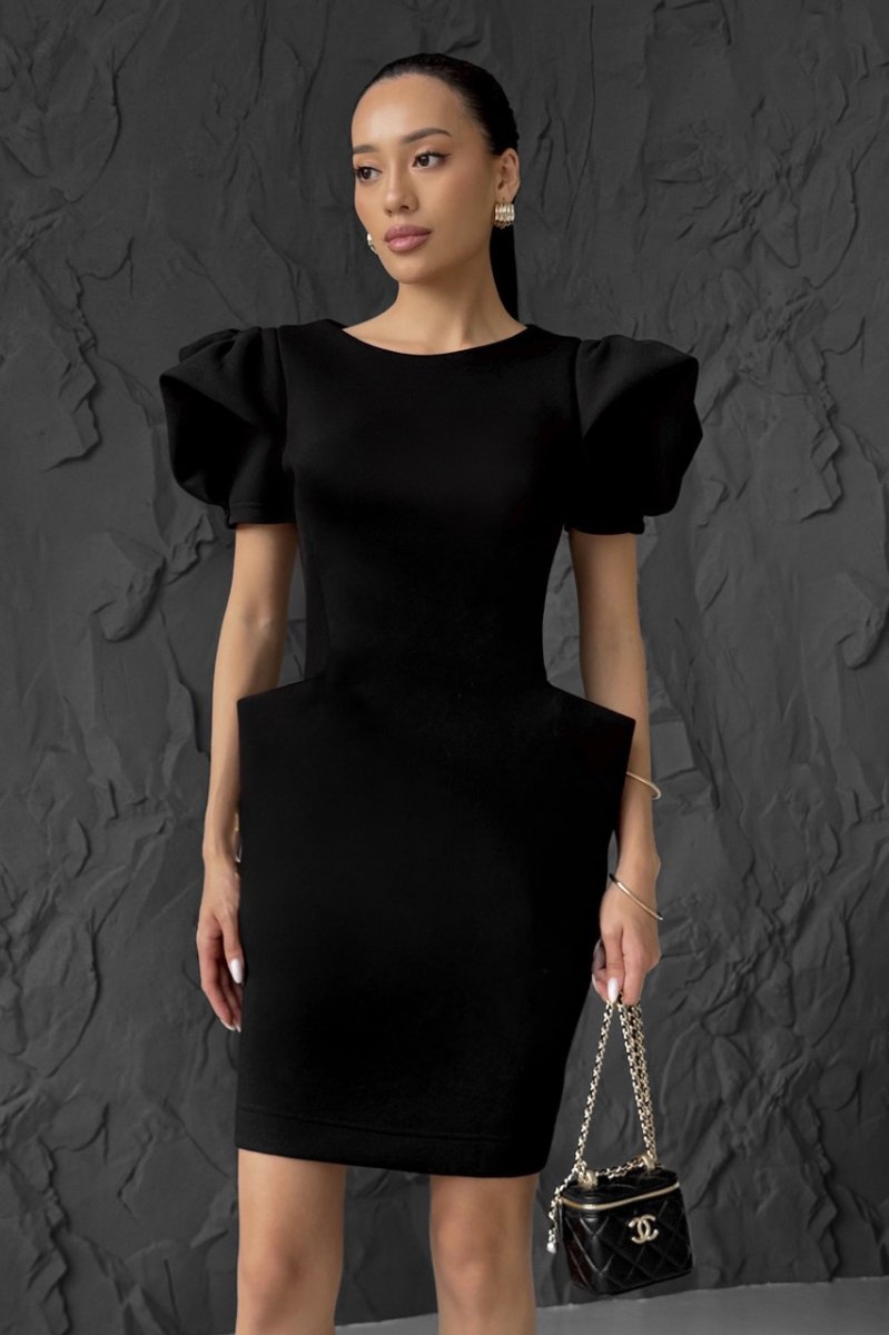 Стильна та елегантна модель прилеглого силуету, що підкреслює фігуру. Виконана з приємної до тіла тканини, має короткий рукав та цільнокройні кишені, які переходять на спинку, додаючи оригінальності дизайну. Ідеальний варіант для сучасного повсякденного або вечірнього образу.