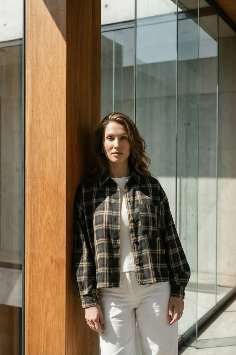 Стильна демісезонна сорочка з сорочкового кашеміру в клітинку — прямий вільний фасон для комфортного повсякденного образу. Модель оснащена цільнокроєною планкою та класичним сорочковим коміром, а декоративні елементи, такі як затяжка по низу та накладна кишеня, додають сучасний акцент. Фурнітура включає ґудзики, резинку та затискачі для регулювання посадки.