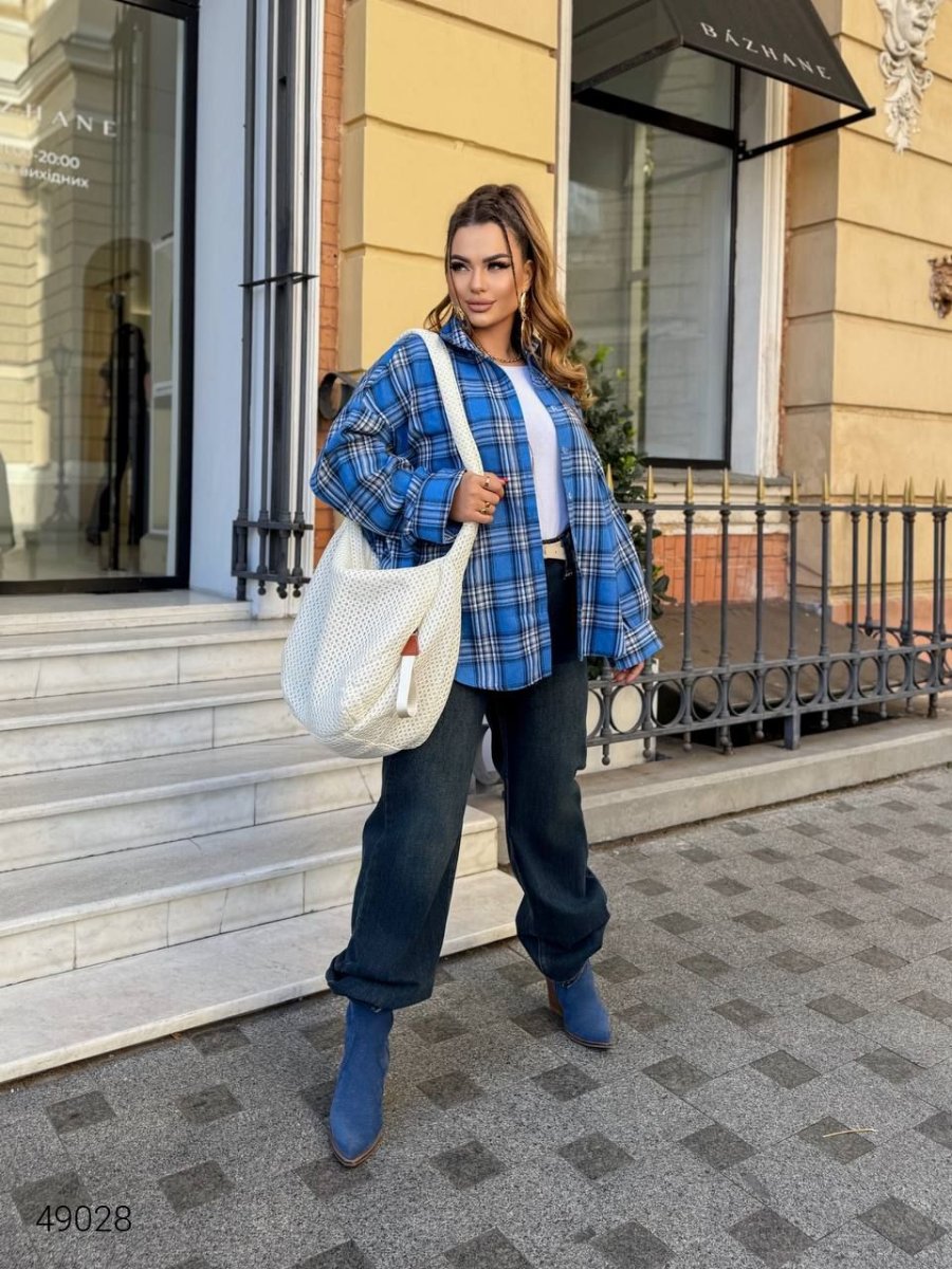 Сорочка в клітинку жіноча. Застібається на ґудзики.