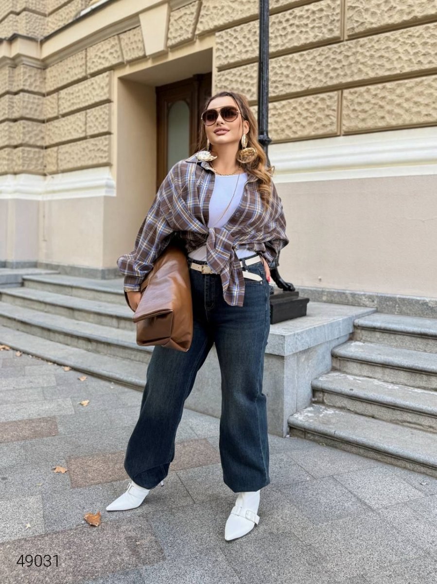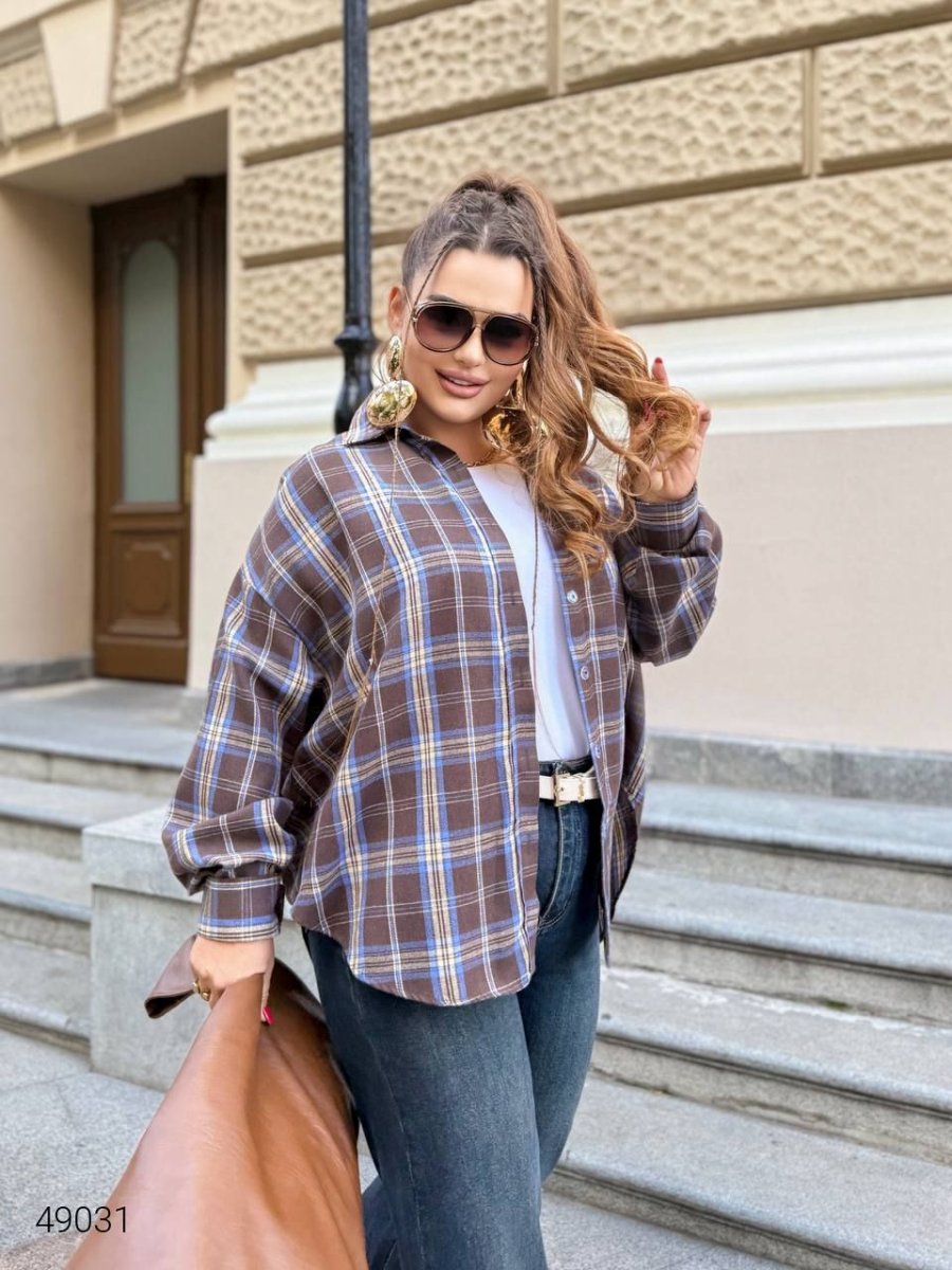 Сорочка в клітку жіноча 49031 коричневий