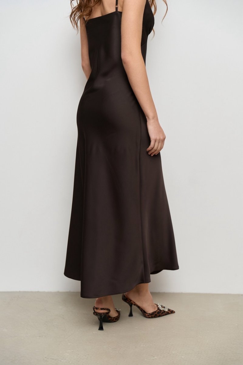 Шоколадна елегантна шовкова сукня на тонких бретелях 1476.1