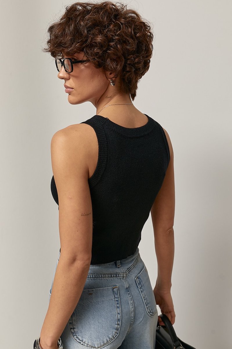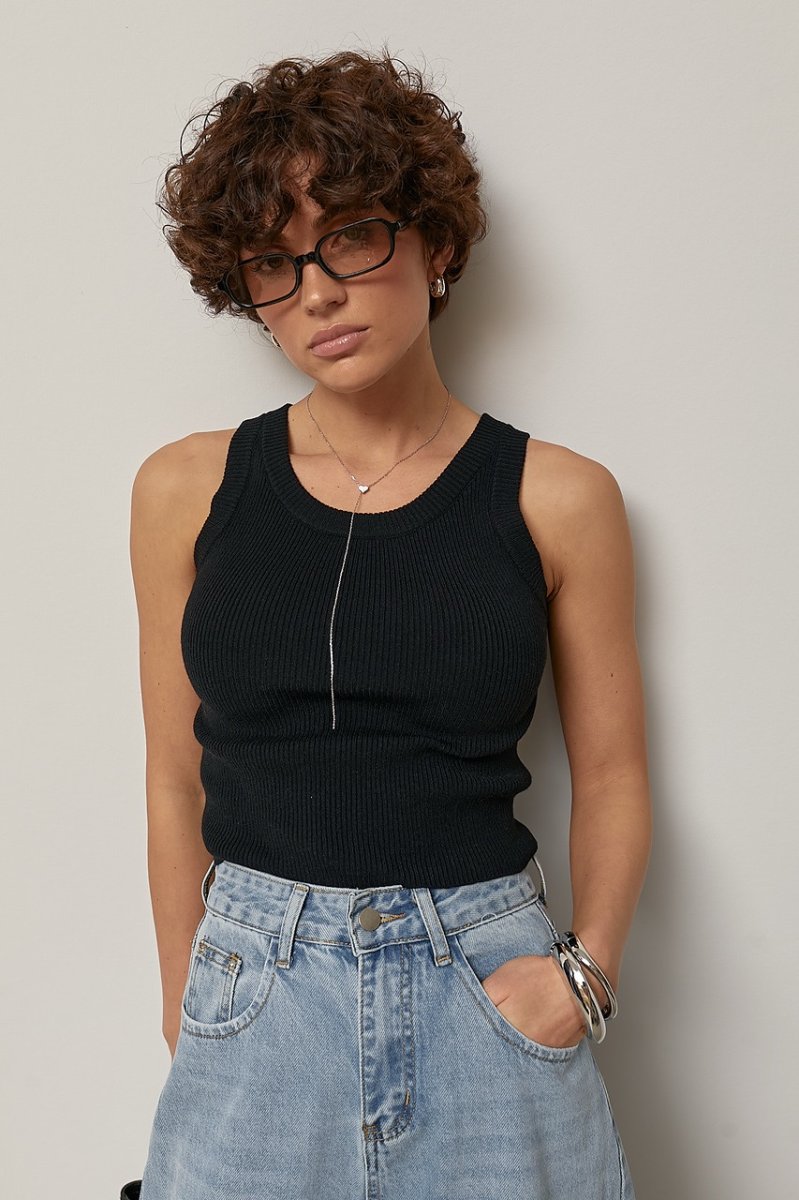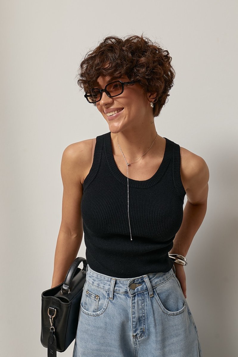 В'язана майка однотонна в рубчик 2560 чорний