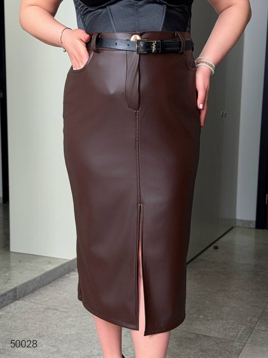 Спідниця з еко-шкіри 50028 коричневий