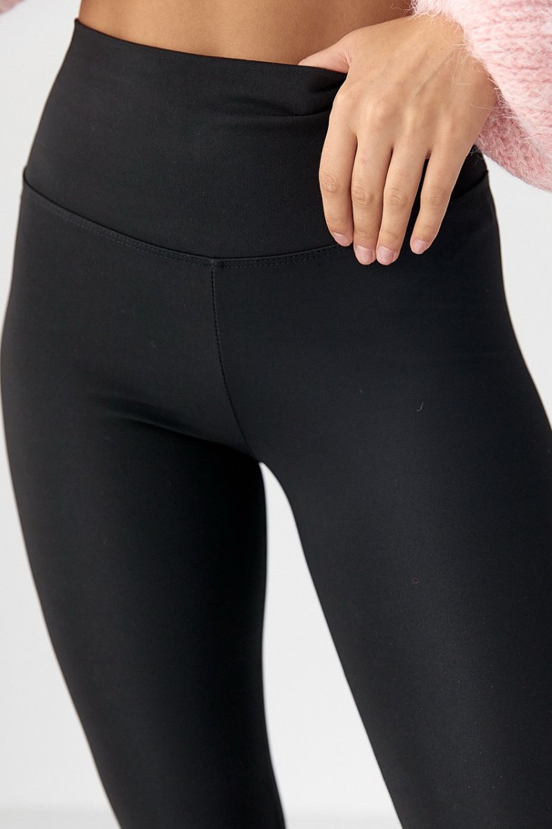Модель має широкий утягуючий пояс, який підкреслює талію та надійно фіксує лосини на фігурі. Внутрішнє легке утеплення байкою дарує приємне відчуття тепла, не обтяжуючи силует.