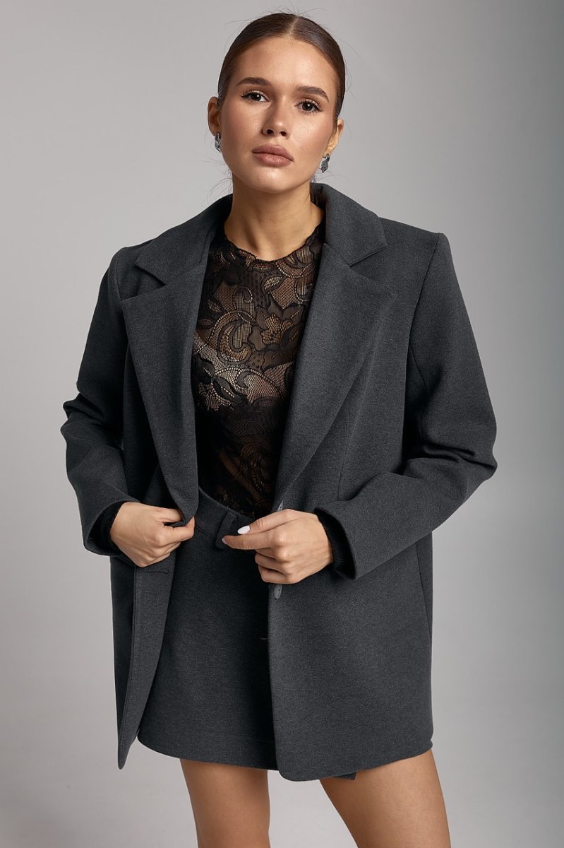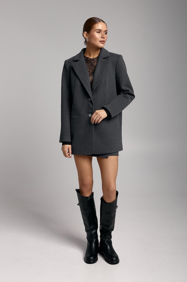 Подовжений жіночий піджак застібається на ґудзики, має функціональні кишені з клапанами і легко поєднується з спідницями, брюками або сукнями. Ідеальний варіант для офісу, міста та casual-образів. Модний демісезонний піджак із пальтової тканини стане базовою річчю у вашому гардеробі.