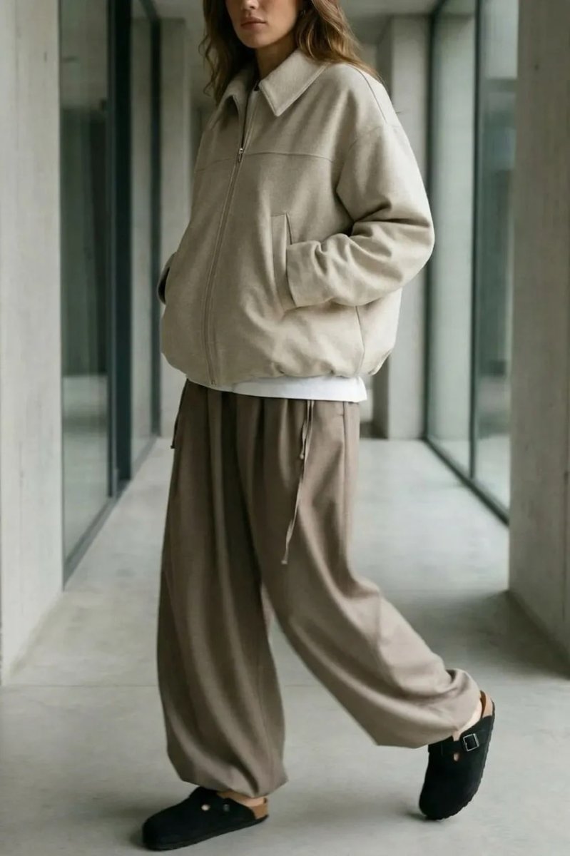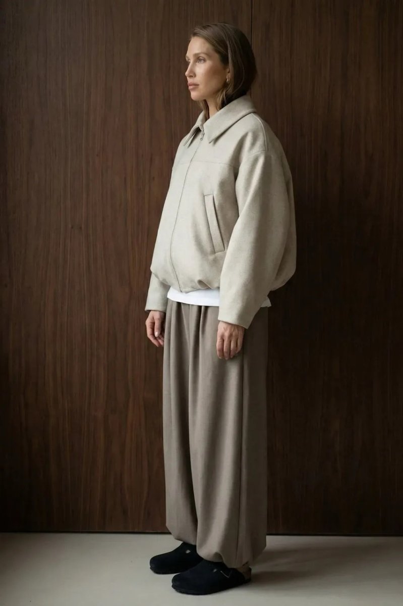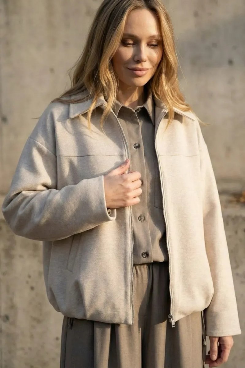 Стильный демисезонный бомбер из итальянской шерсти в бежевом цвете — комфортная и универсальная вещь для повседневного гардероба. Свободный фасон и спущенный рукав обеспечивают удобную посадку, а декоративные защипы по низу добавляют модный акцент. Модель застёгивается на молнию и оснащена удобными карманами.