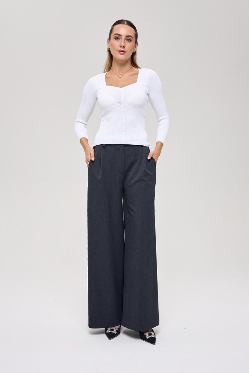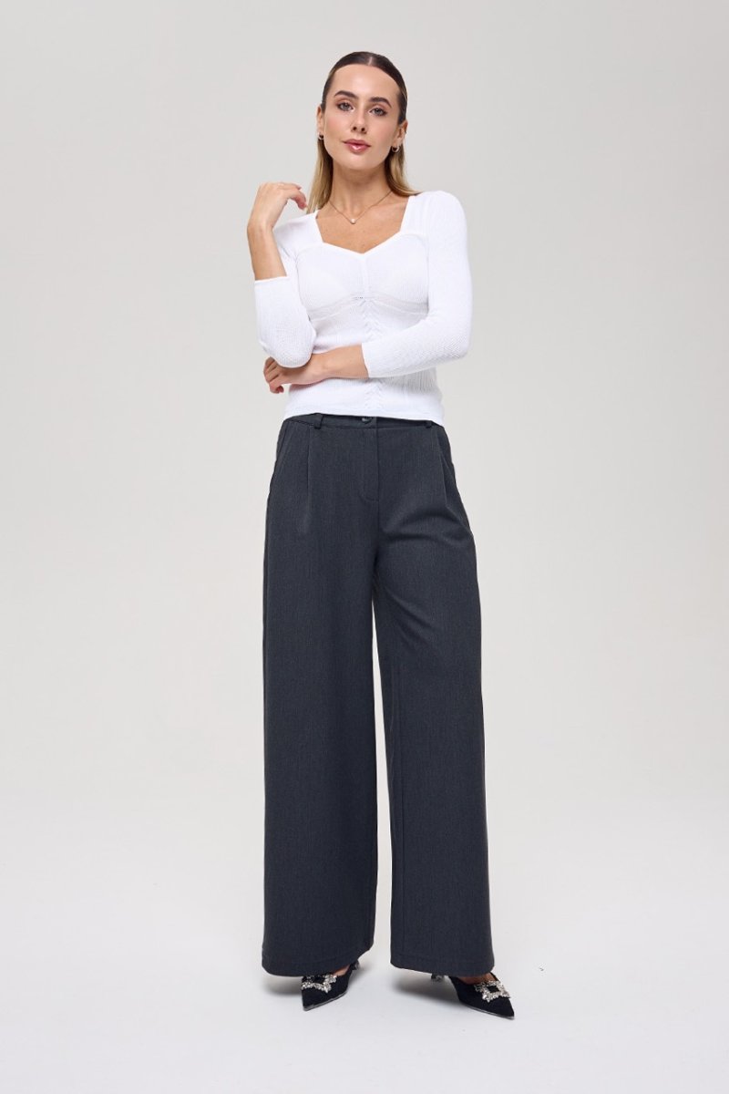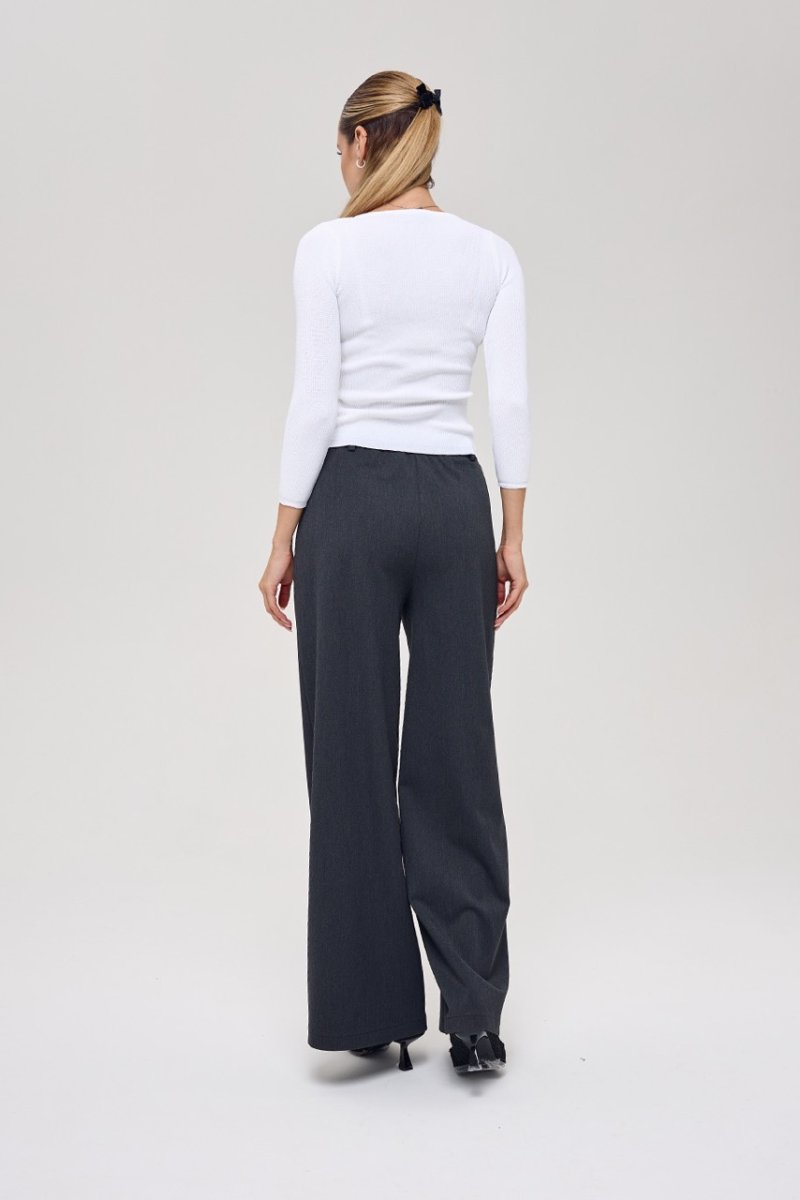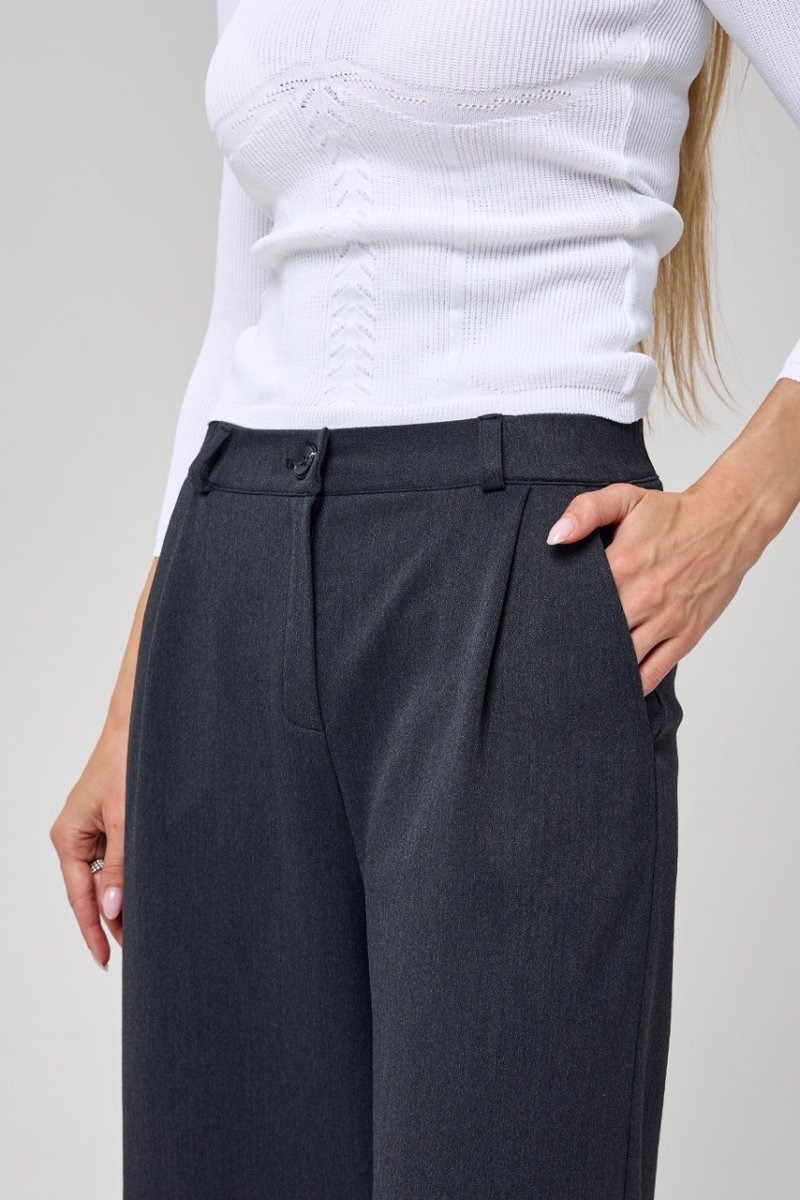 Брюки палаццо из костюмной ткани с добавлением шерсти серого цвета 4368
