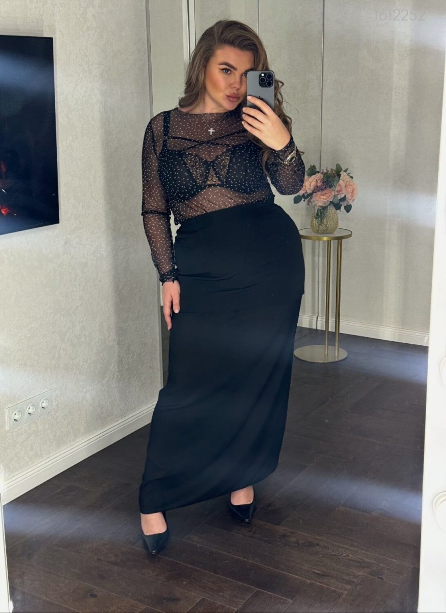 Юбка «Майори» макси, чёрная — длина макси, пояс на резинке по спинке, застёжка на молнию.