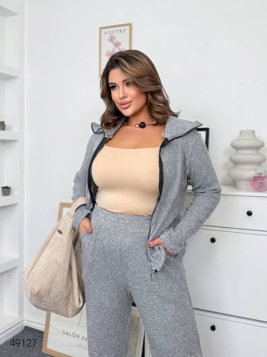 Костюм женский из ангоры. Кофта застегивается на молнии. Брюки-палаццо на резинке, есть карманы.