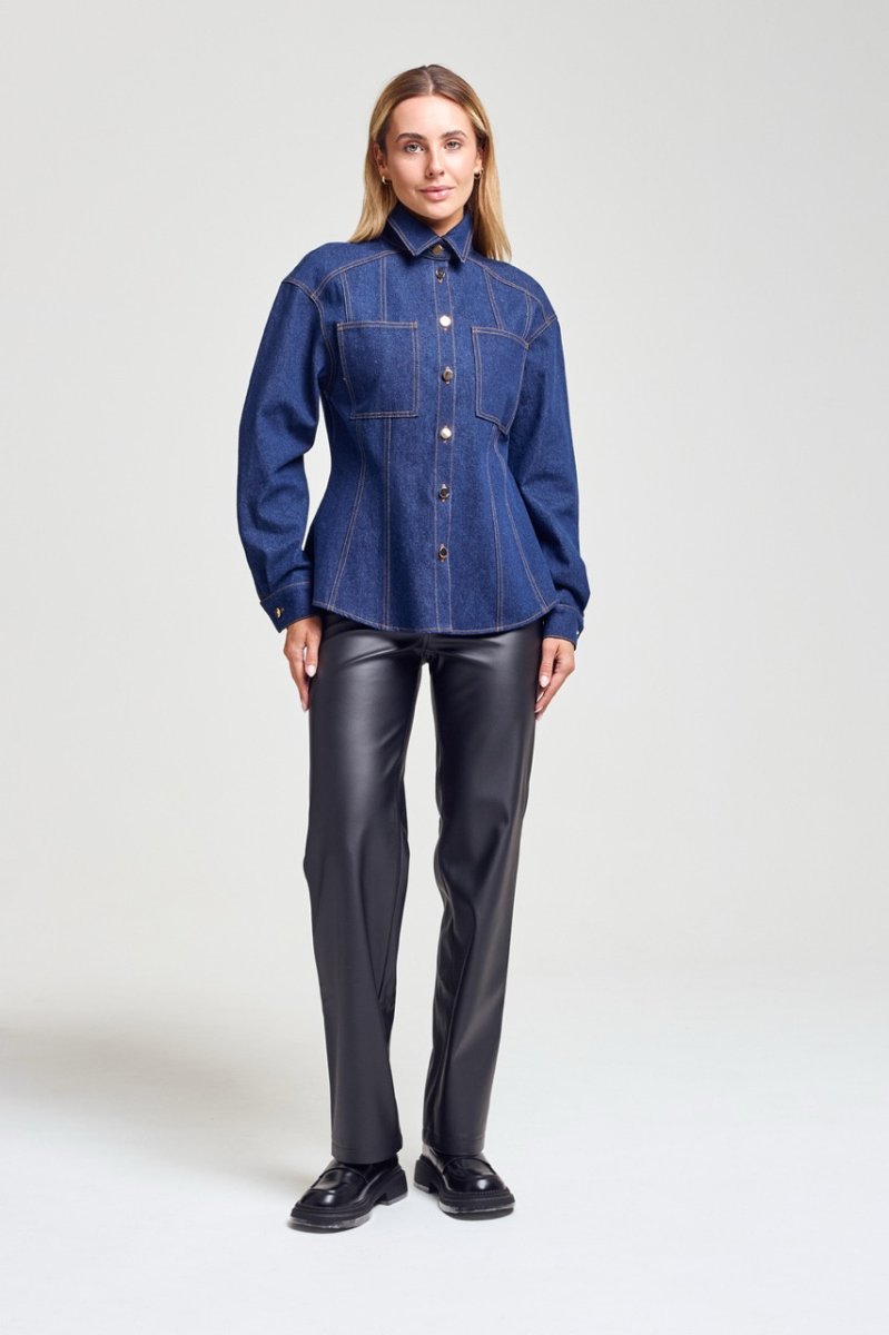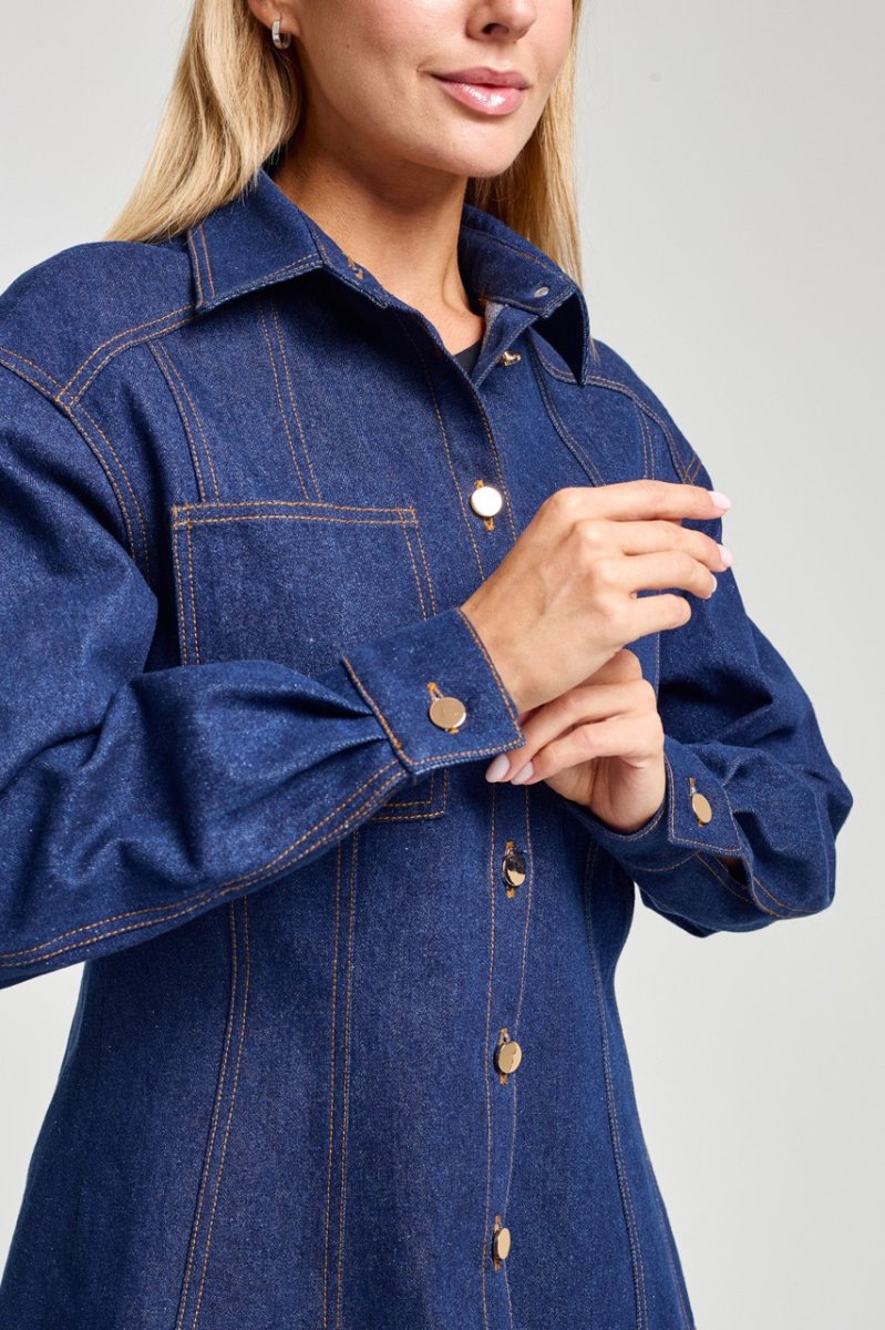Джинсовая куртка приталенного силуэта с легким разрешением по линии бедер создает женственный и элегантный образ. Модель украшена золотистыми пуговицами, придающими изысканный акцент. Благодаря универсальному крою куртку можно носить поверх футболки, джемпера или других базовых вещей. Стильный дизайн делает ее уместной как в повседневных, так и в более изысканных сочетаниях.
