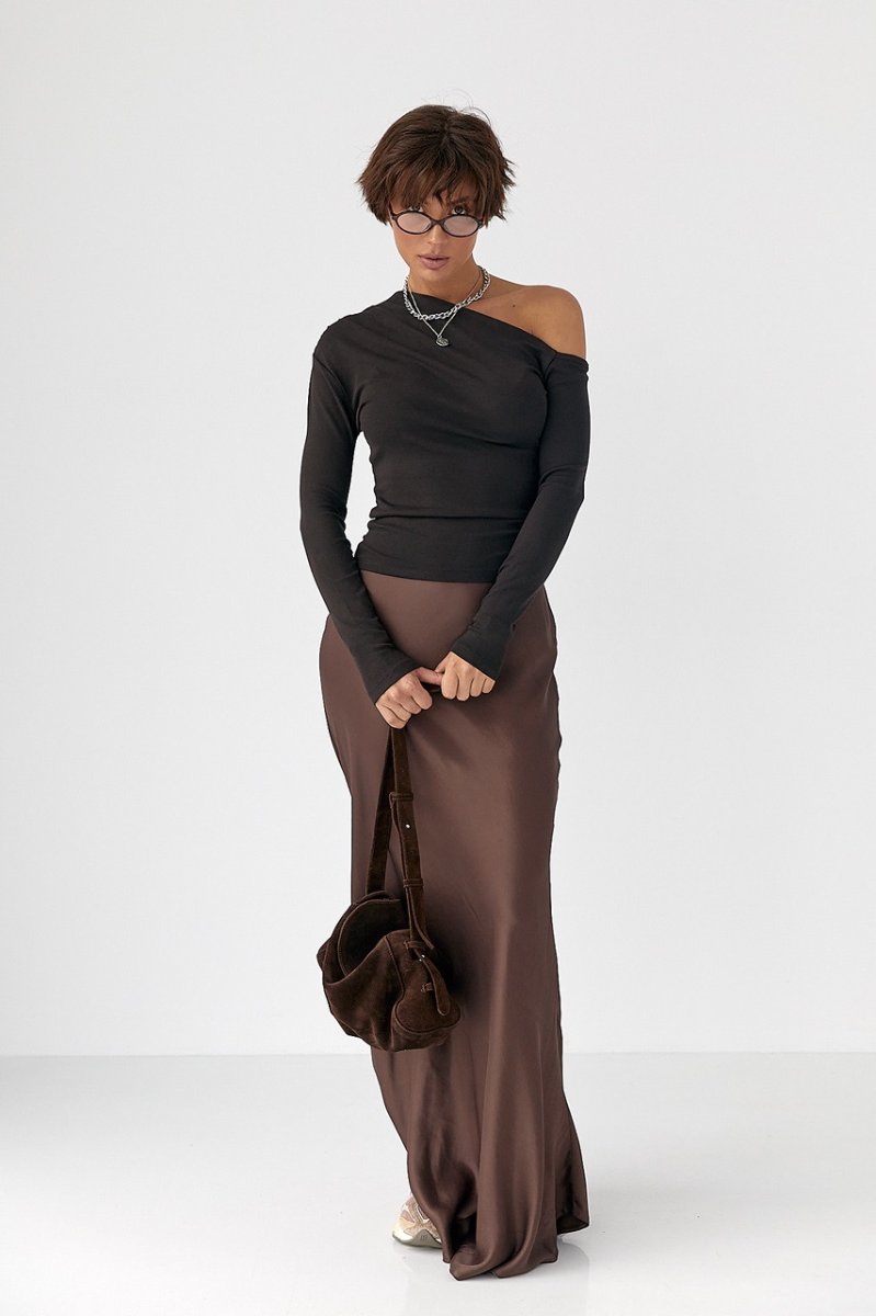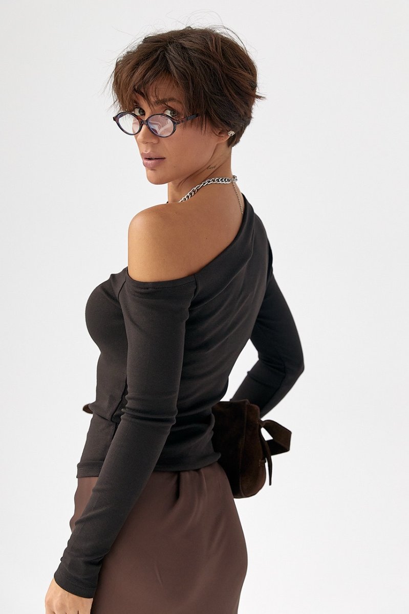 Обтягивающий лонгслив с открытым плечом 161301 темно-коричневый