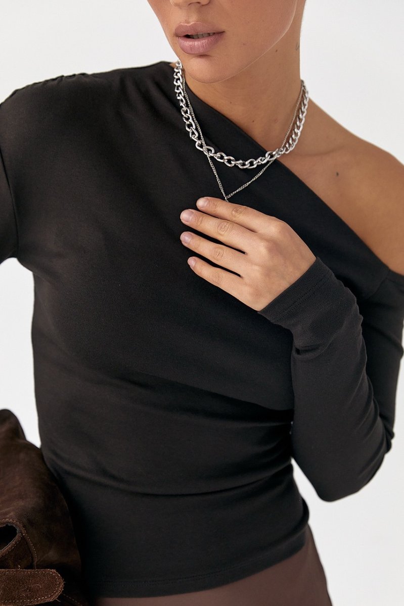 Обтягивающий лонгслив с открытым плечом 161301 черный