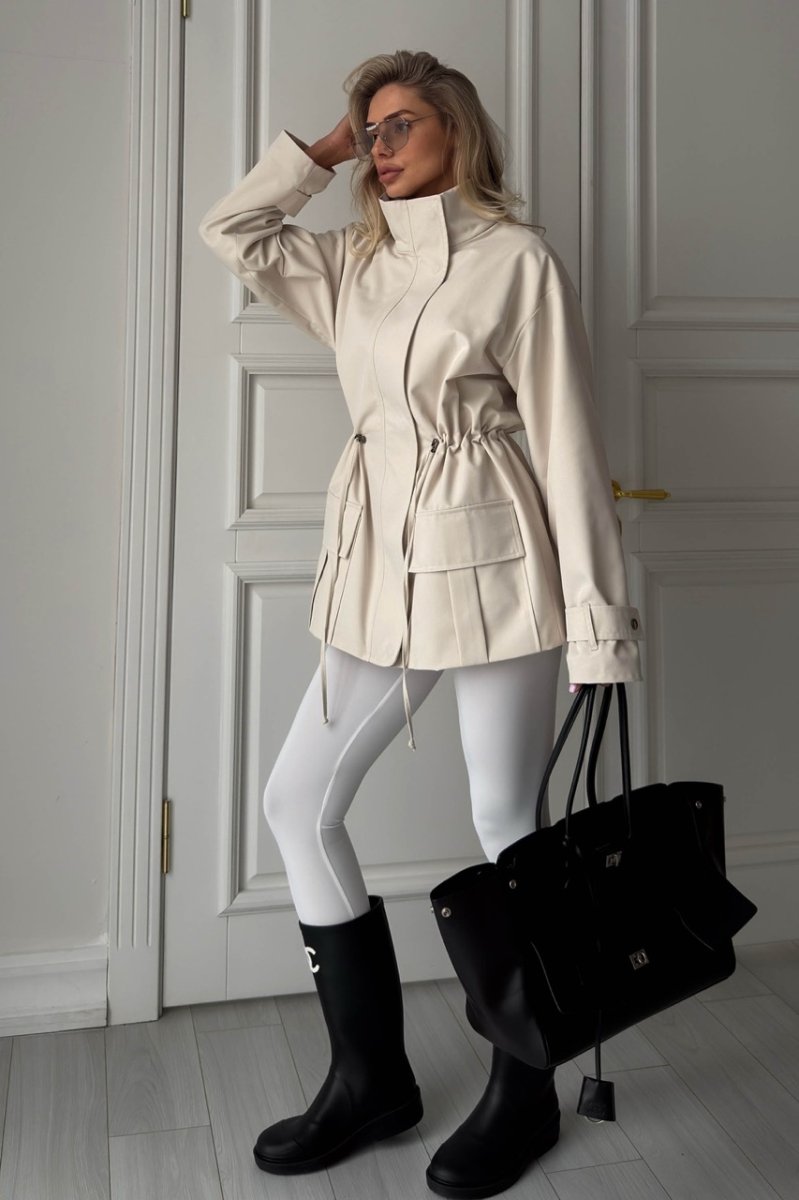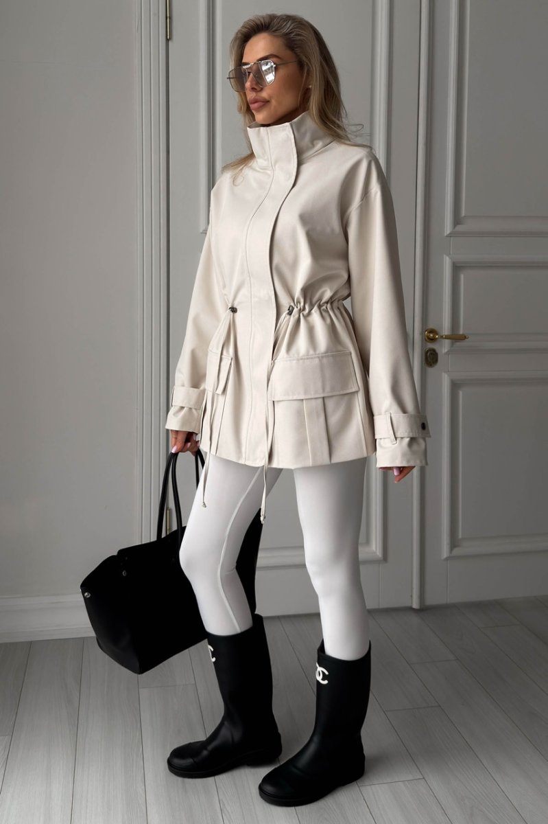 Парка из плотной плащевой ткани — стильная модель в свободном силуэте с акцентом на фактуру. Водонепроницаемая ткань с жаккардовой подкладкой хорошо держит форму, а кулиска по талии позволяет регулировать посадку и подчёркивать силуэт. Накладные карманы, воротник-стойка и сочетание молнии с кнопками добавляют практичности и современного характера.