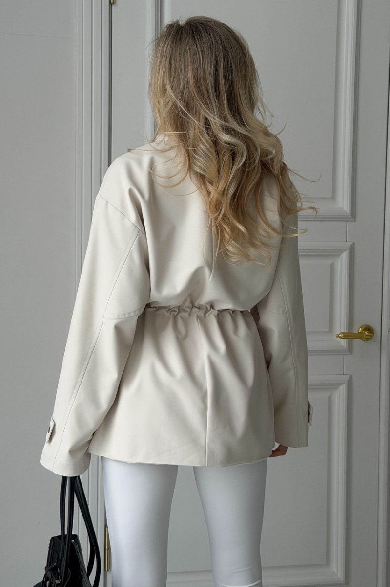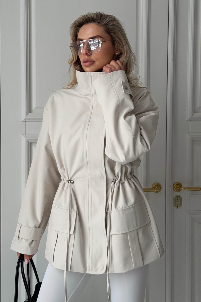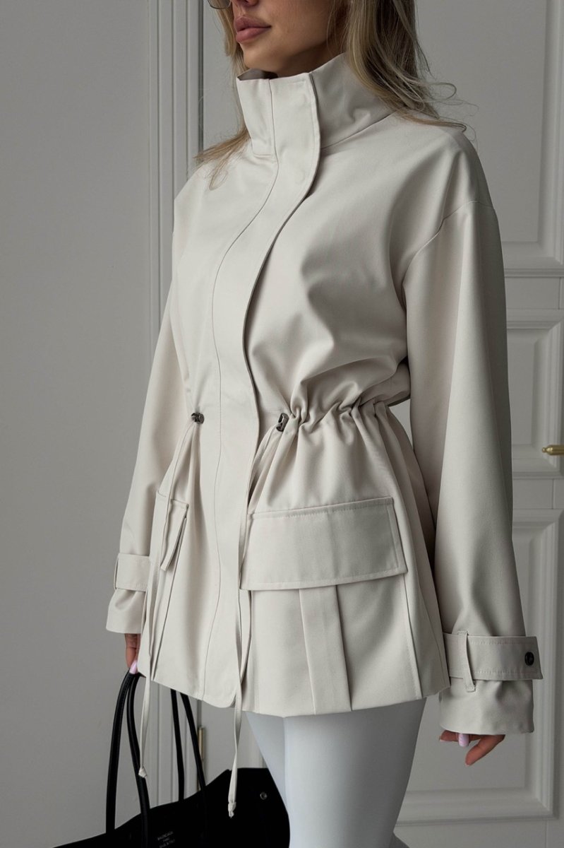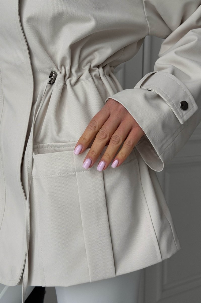 Декоративные элементы: кулиска по талии, хлястик на рукаве