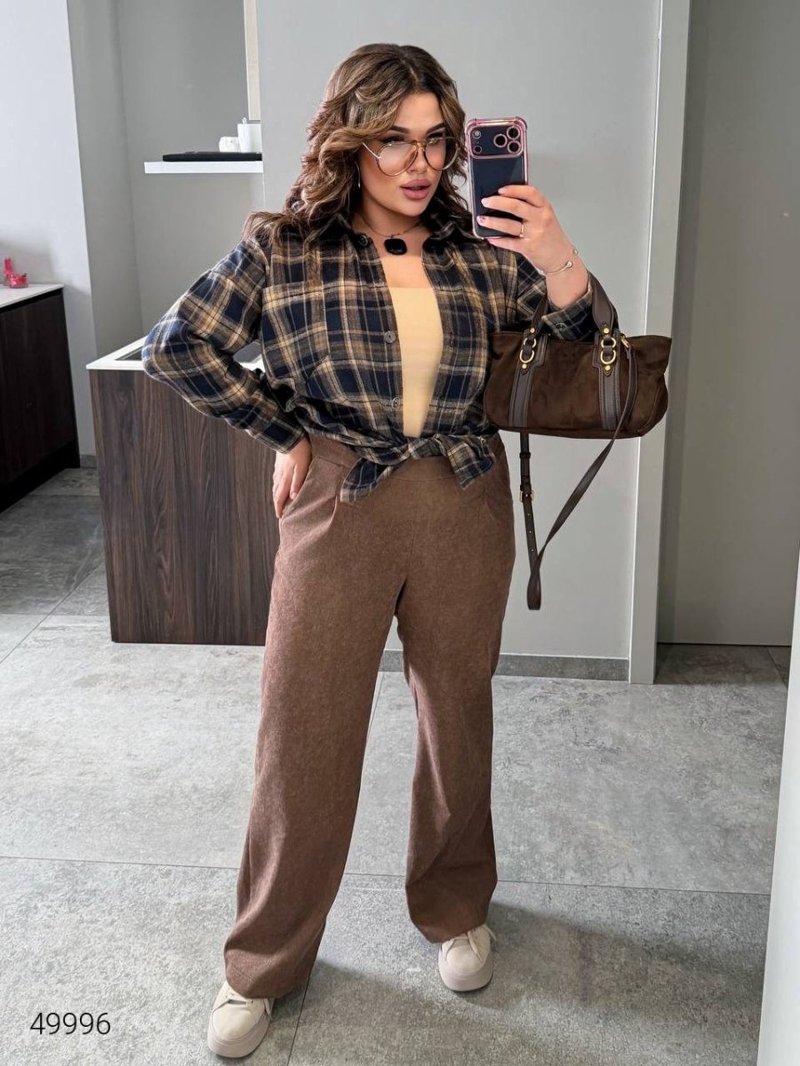 Рубашка женская в клетку 49996 бежевый