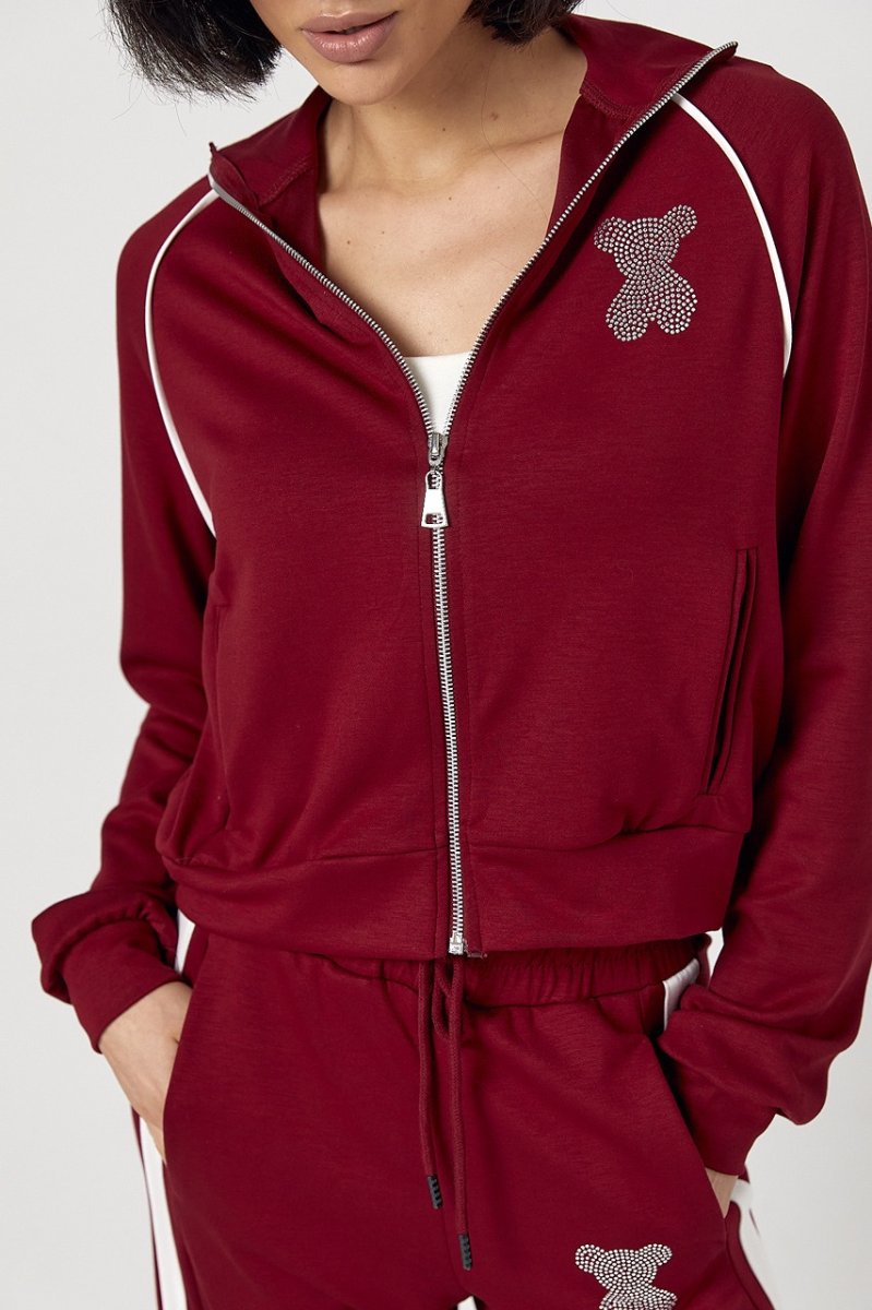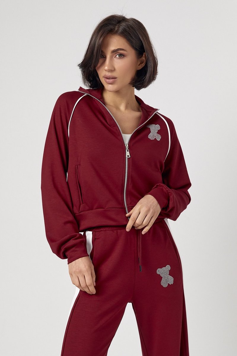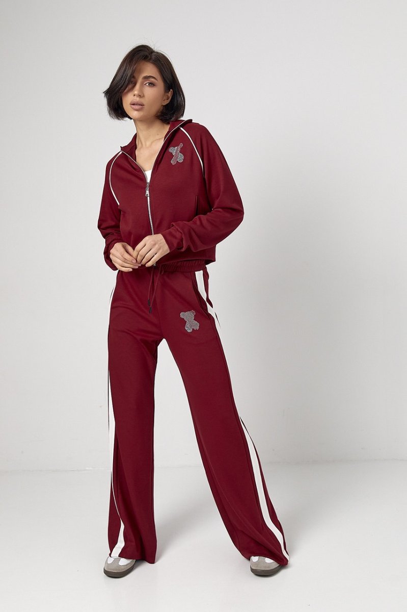 Спортивный костюм с мишкой из термостразов 6081 бордо