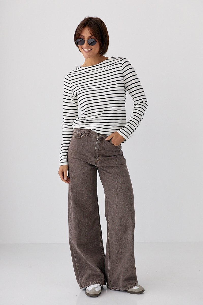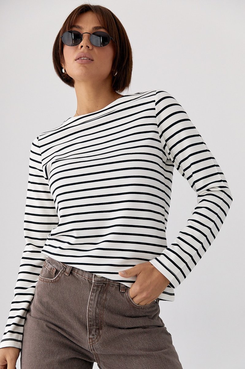 Трикотажный лонг в полоску – стильная базовая вещь, сочетающая комфорт и непринужденный шарм. Мягкий трикотаж приятен к телу, хорошо тянется и сохраняет форму, обеспечивая удобство в течение всего дня.