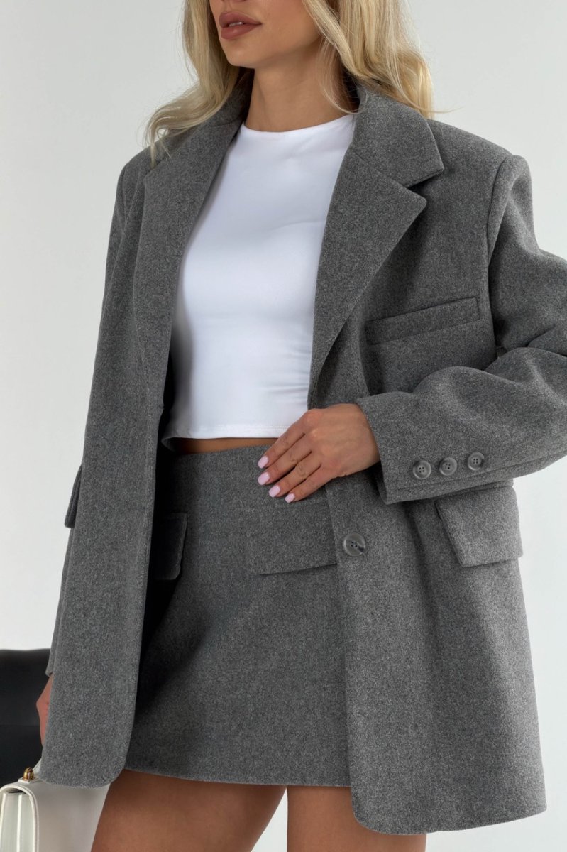 Укороченное пальто из кашемира и шерсти — стильная классика в современном прочтении. Лаконичный оверсайз силуэт, английский воротник и декоративные карманы с клапанами создают элегантный и одновременно расслабленный образ. Жаккардовая подкладка придает изысканность, а благородные оттенки мокко, серого и графитового легко сочетаются с любым гардеробом.