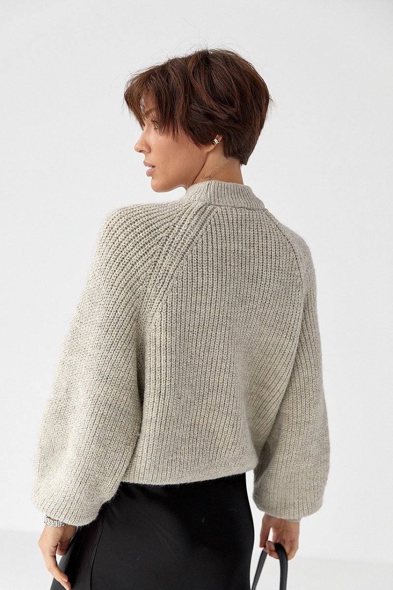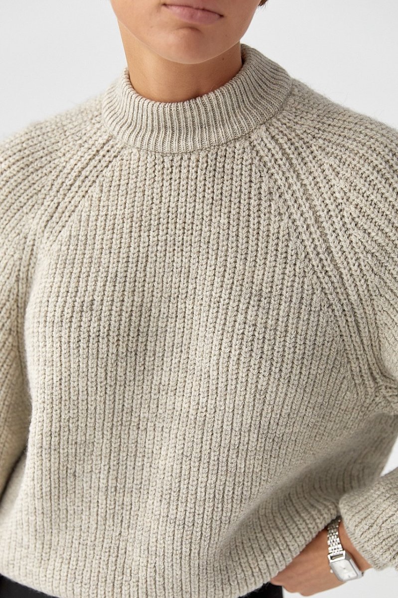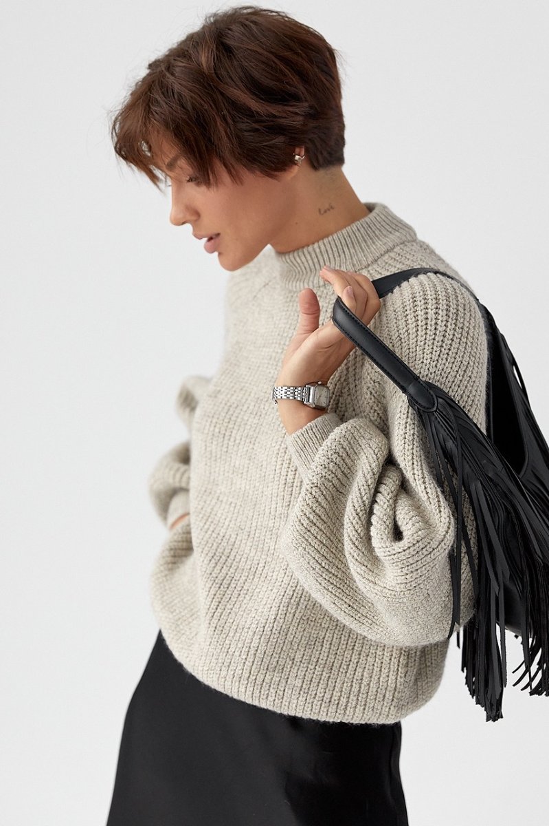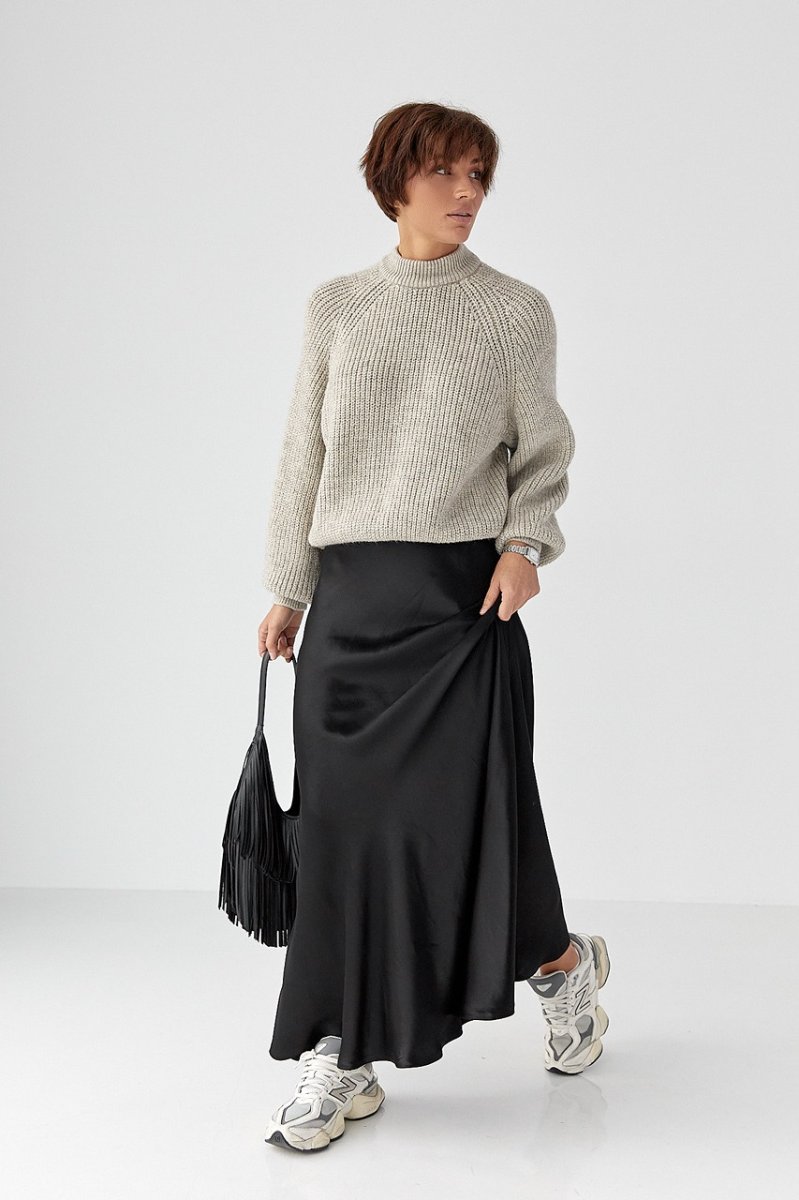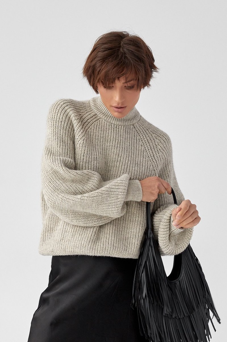 Вязаный свитер с рукавами реглан — уютная и стильная модель, сочетающая комфорт и современную эстетику. Плотная большая вязка создает выразительную текстуру, добавляя объем и подчеркивая лаконичность силуэта.