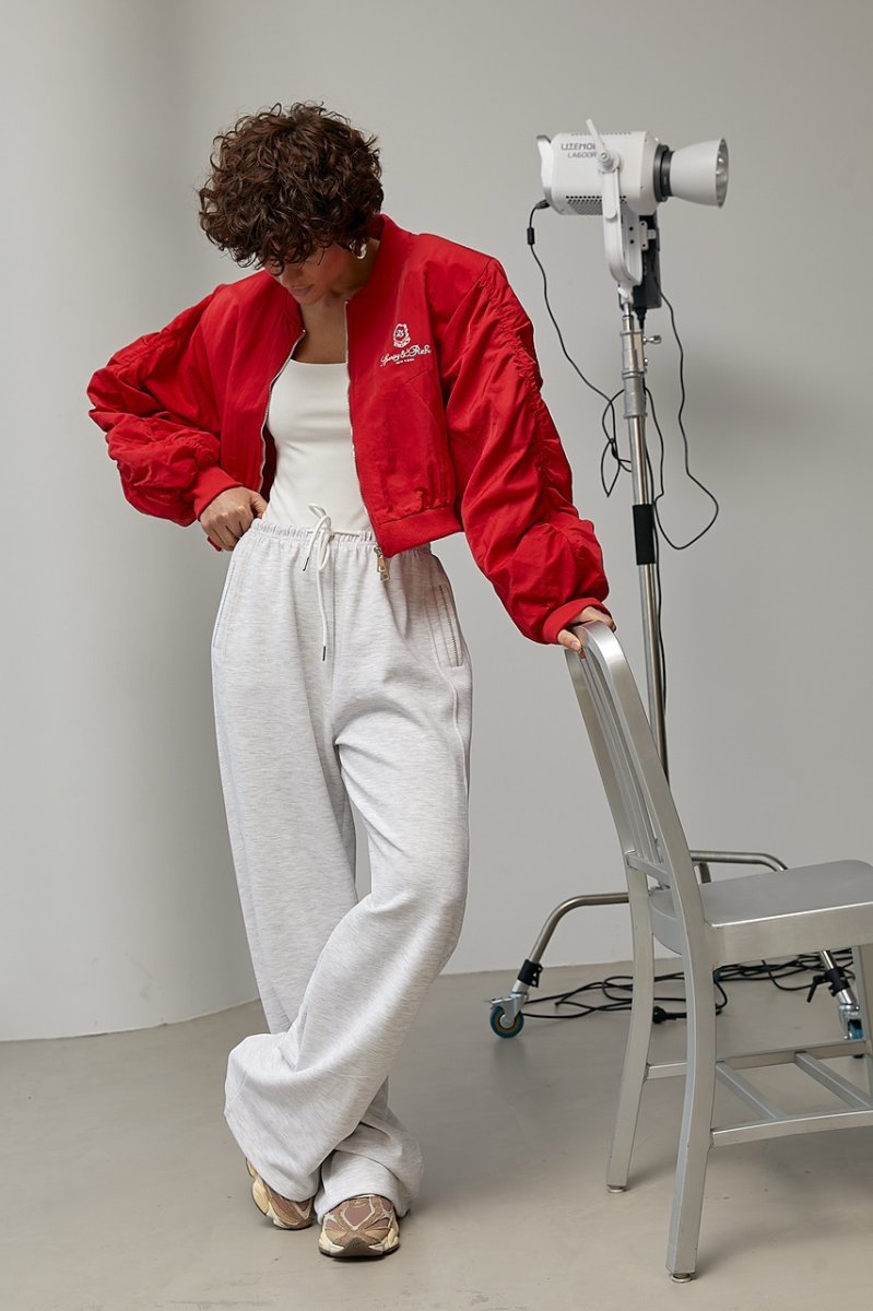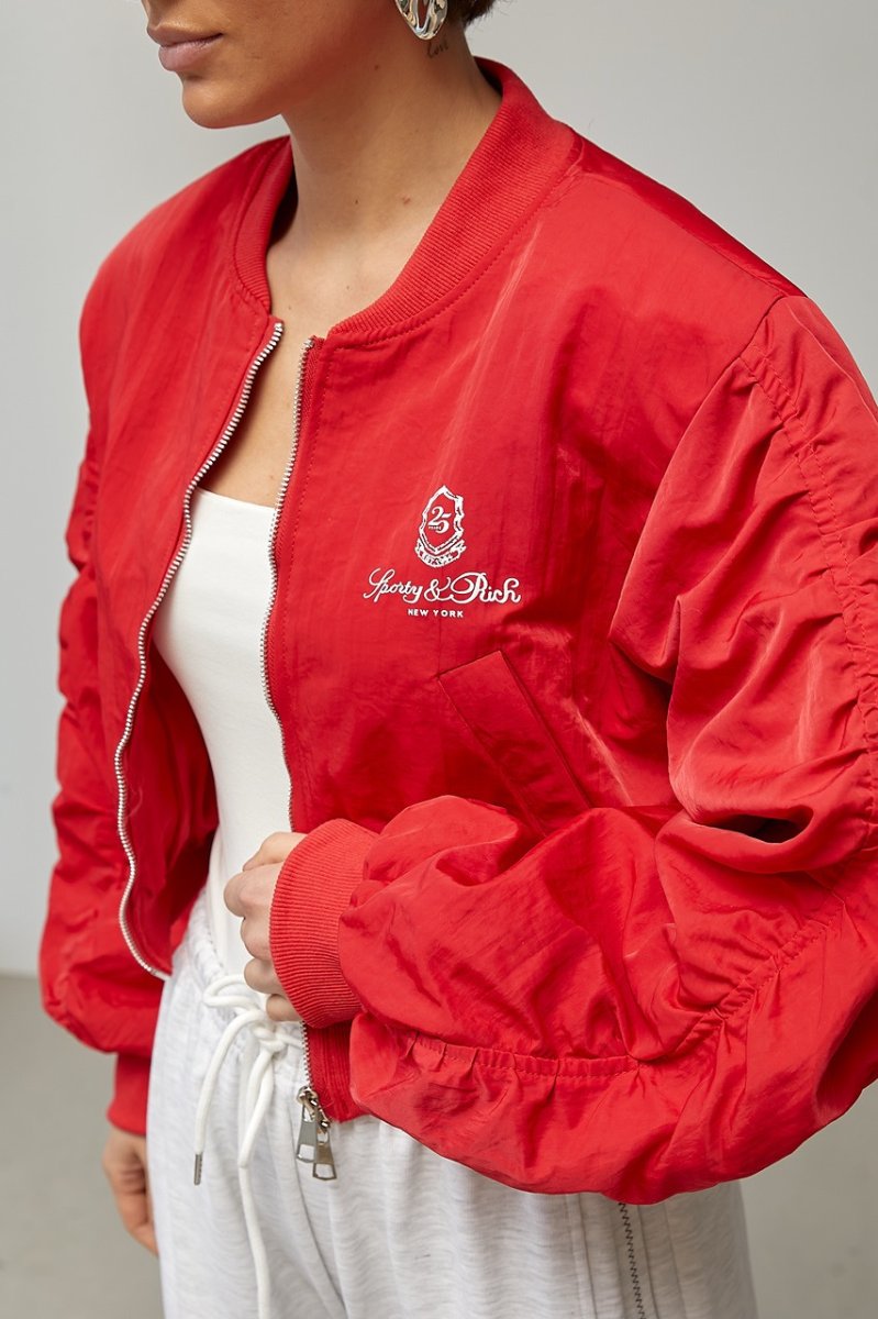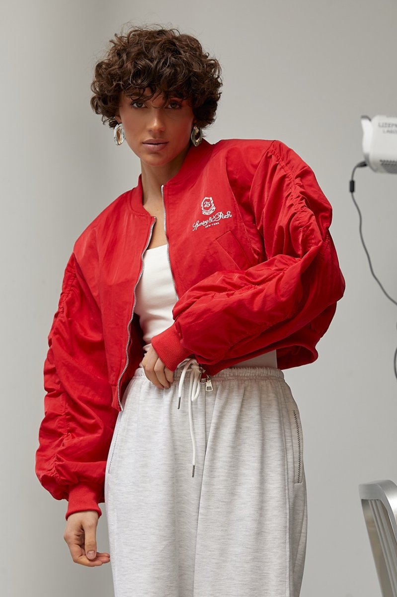 Женская ветровка-бомбер с объемными рукавами 9075 красный