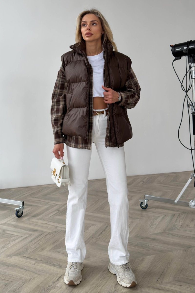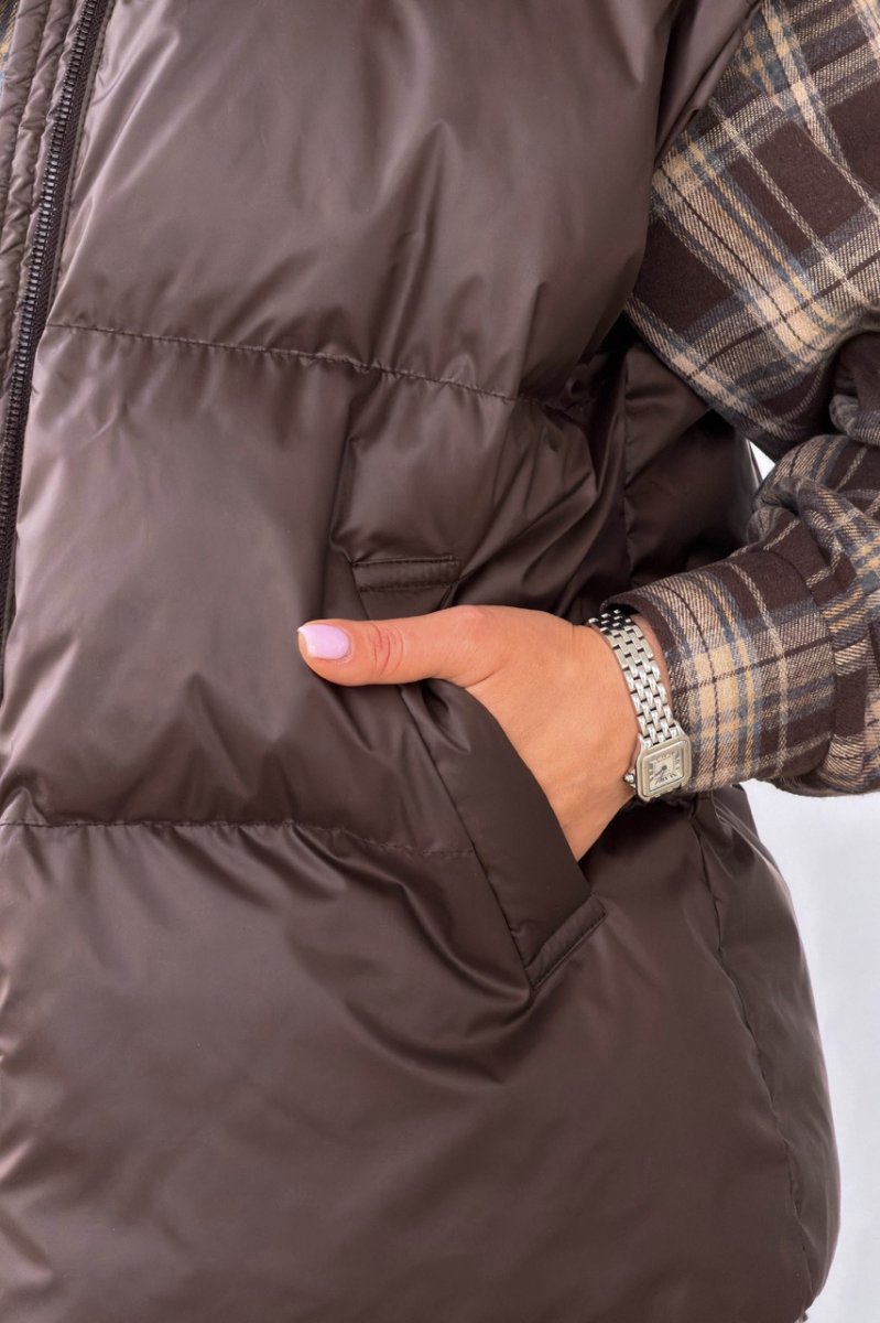 Стильный оверсайз с прямым силуэтом и воротником-стойкой. Выполнен из плащевой ткани на жаккардовой подкладке, наполнитель — лёгкий биопух для комфортного тепла без лишнего объёма. Застёжка на молнию, аккуратные карманы-листочки и универсальная длина — идеальный вариант для многослойных образов.